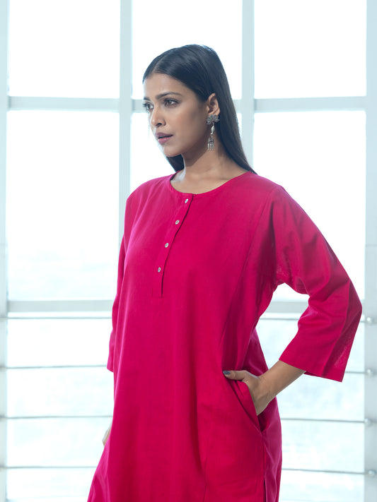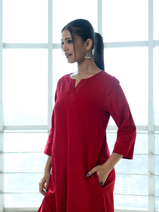 Red cotton linen a line kurta co-ord set