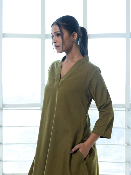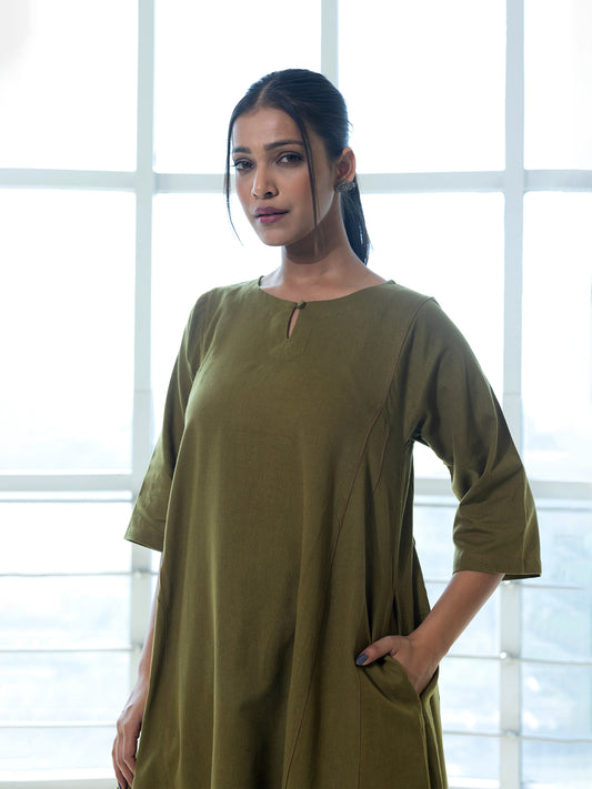 Mehndi green cotton linen kurta co-ord set