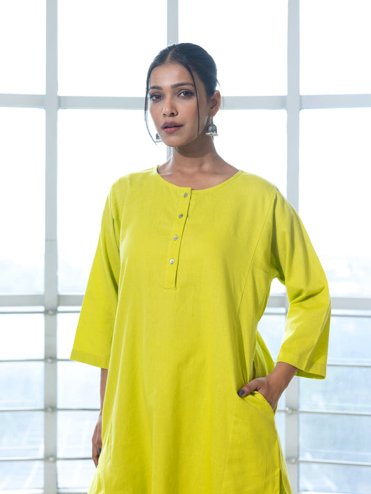 Lemon green cotton linen co-ord set
