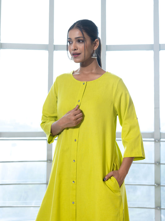 Lemon yellow a line cotton linen kurta co-ord set