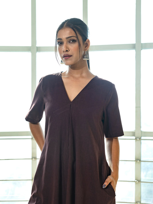 Brown cotton linen a line kurta co-ord set