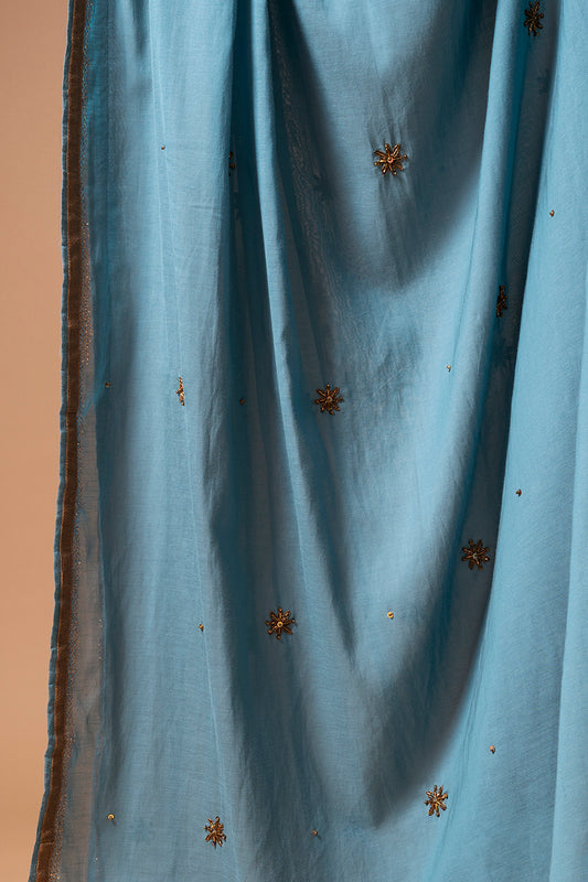 Antique Gold Zardozi Mulmul Lurex Dupatta