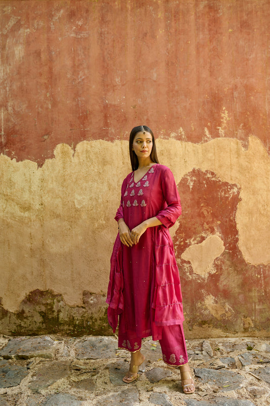 Berry Pink Cotton Silk Zardozi Kurta