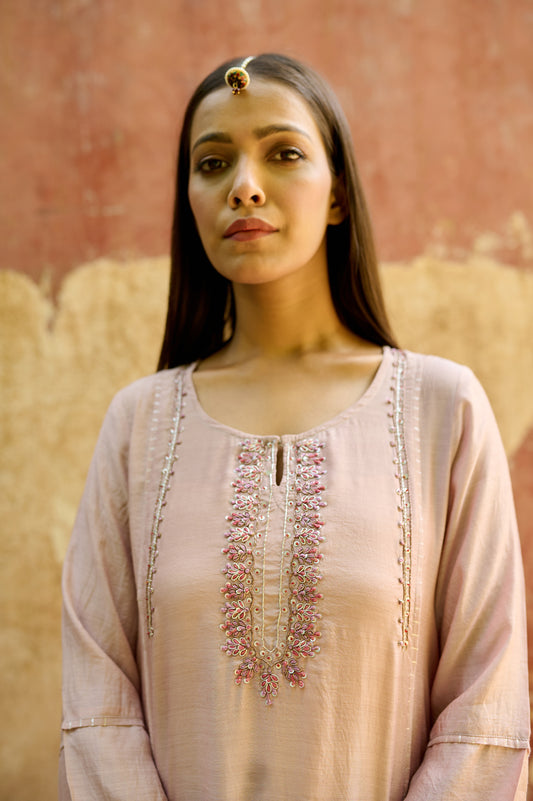 Light Mauve Cotton Silk Zardozi Kurta