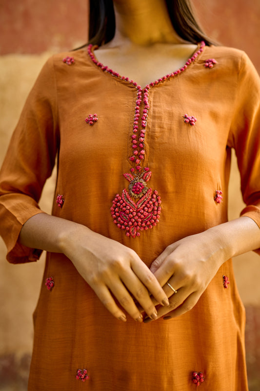 Rust Orange Cotton Silk Zardozi Kurta