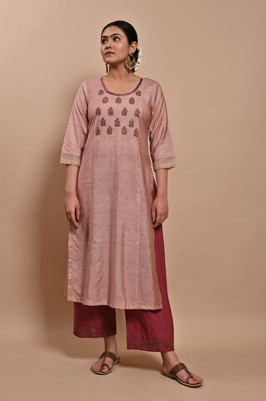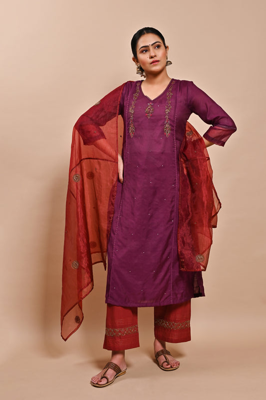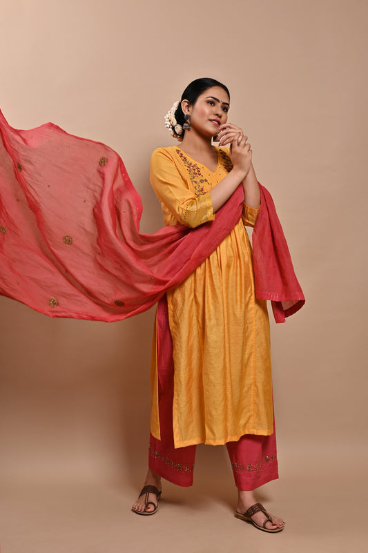 Carrot Pink Zardozi Silk Chanderi Dupatta
