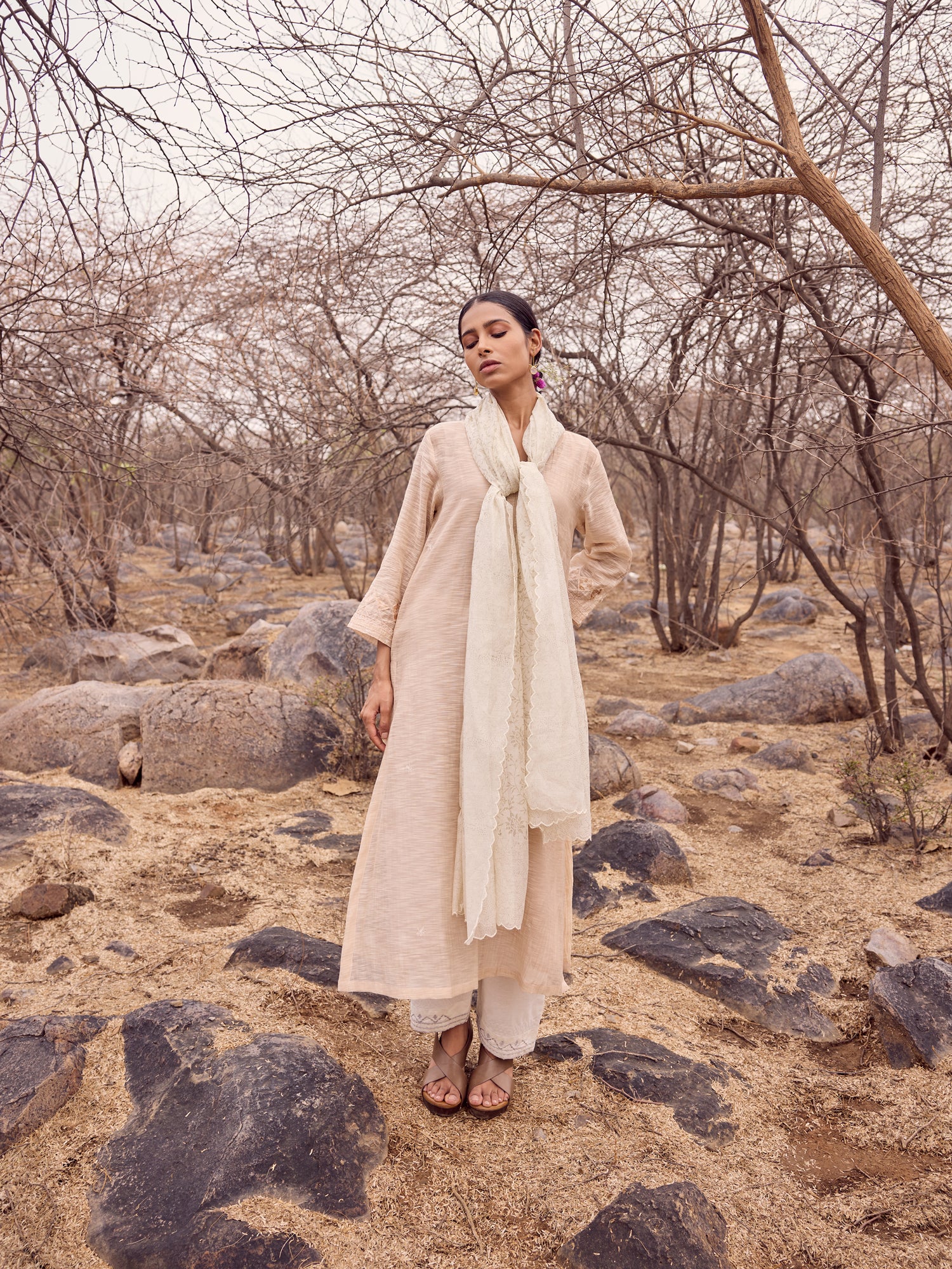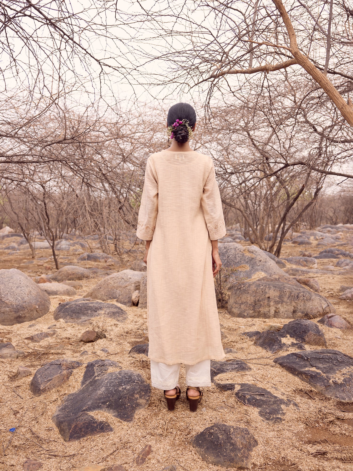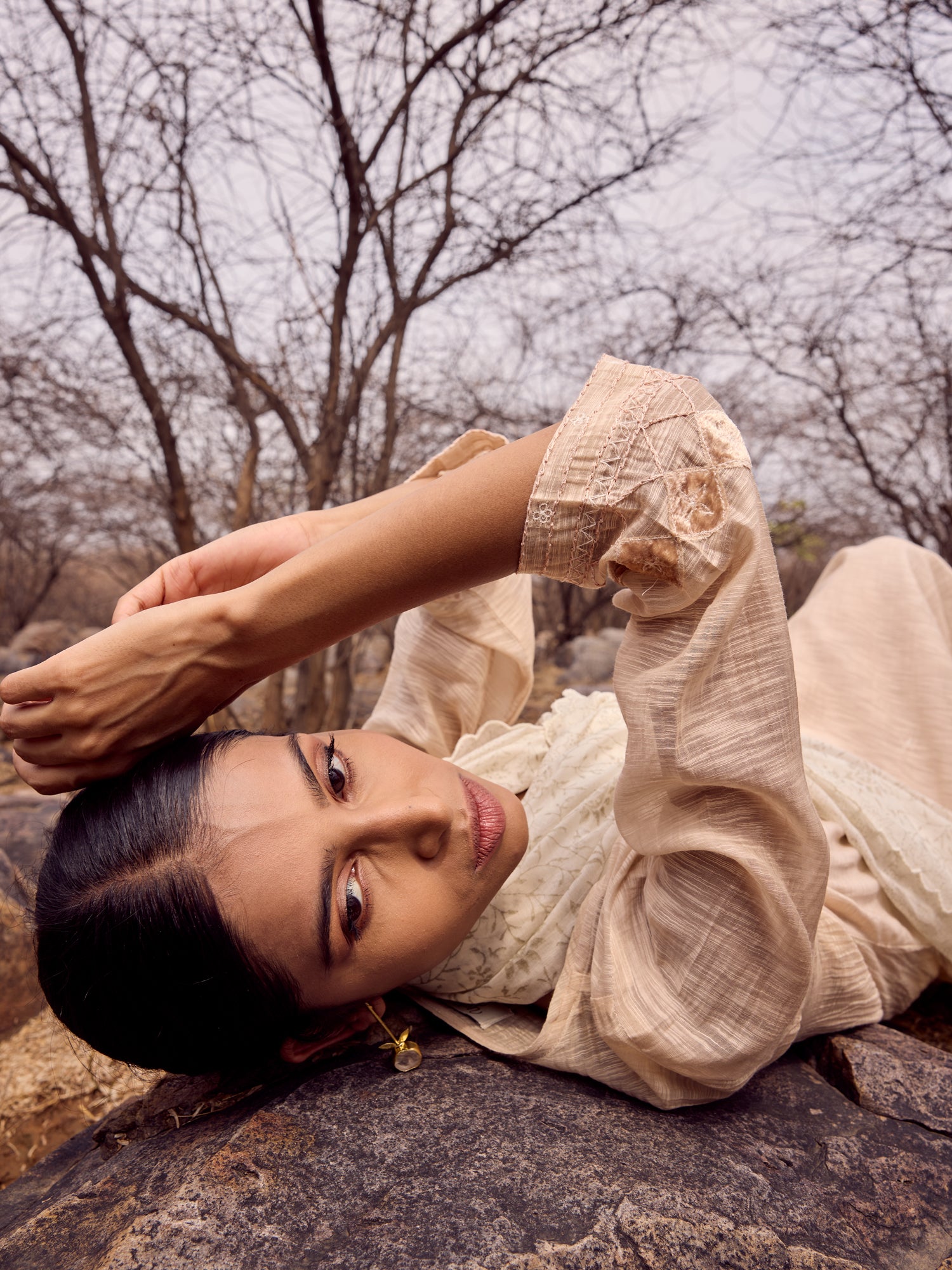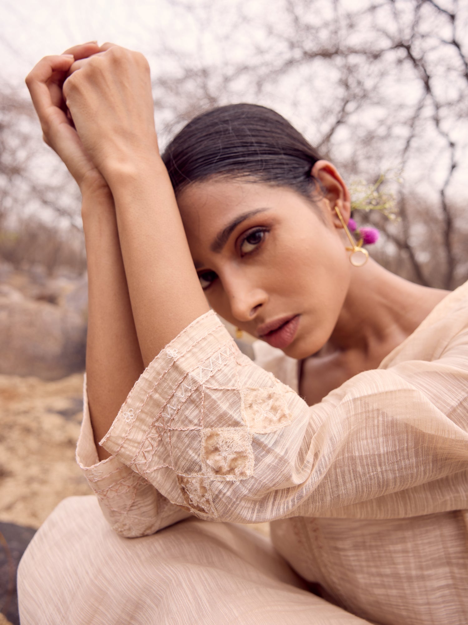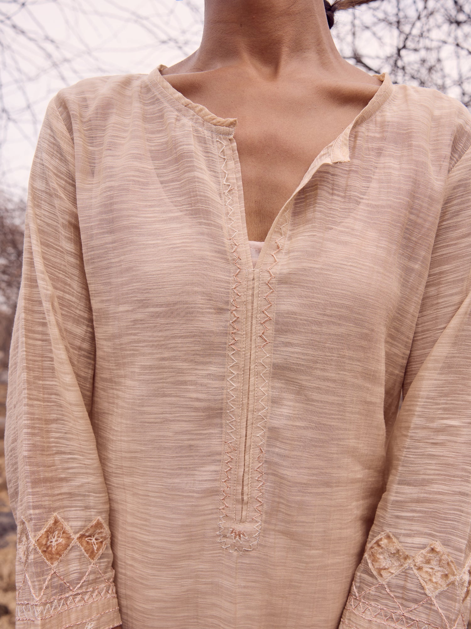- DETAILS: Sleeve are adorned with thread and cutwork and side slits for easy mobility.
