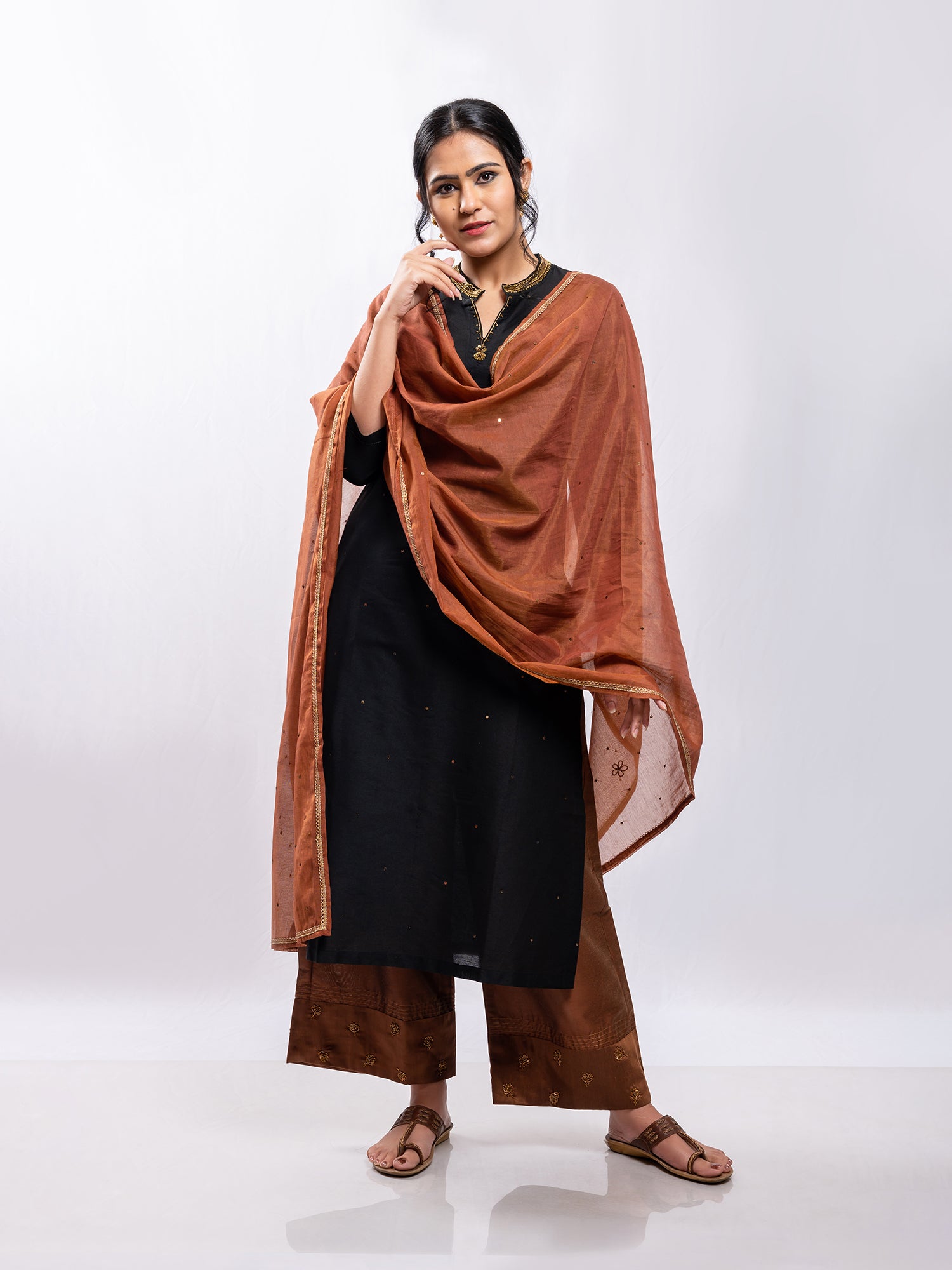 - DETAILS: The cotton chanderi dupatta features beautiful aari hand work.
