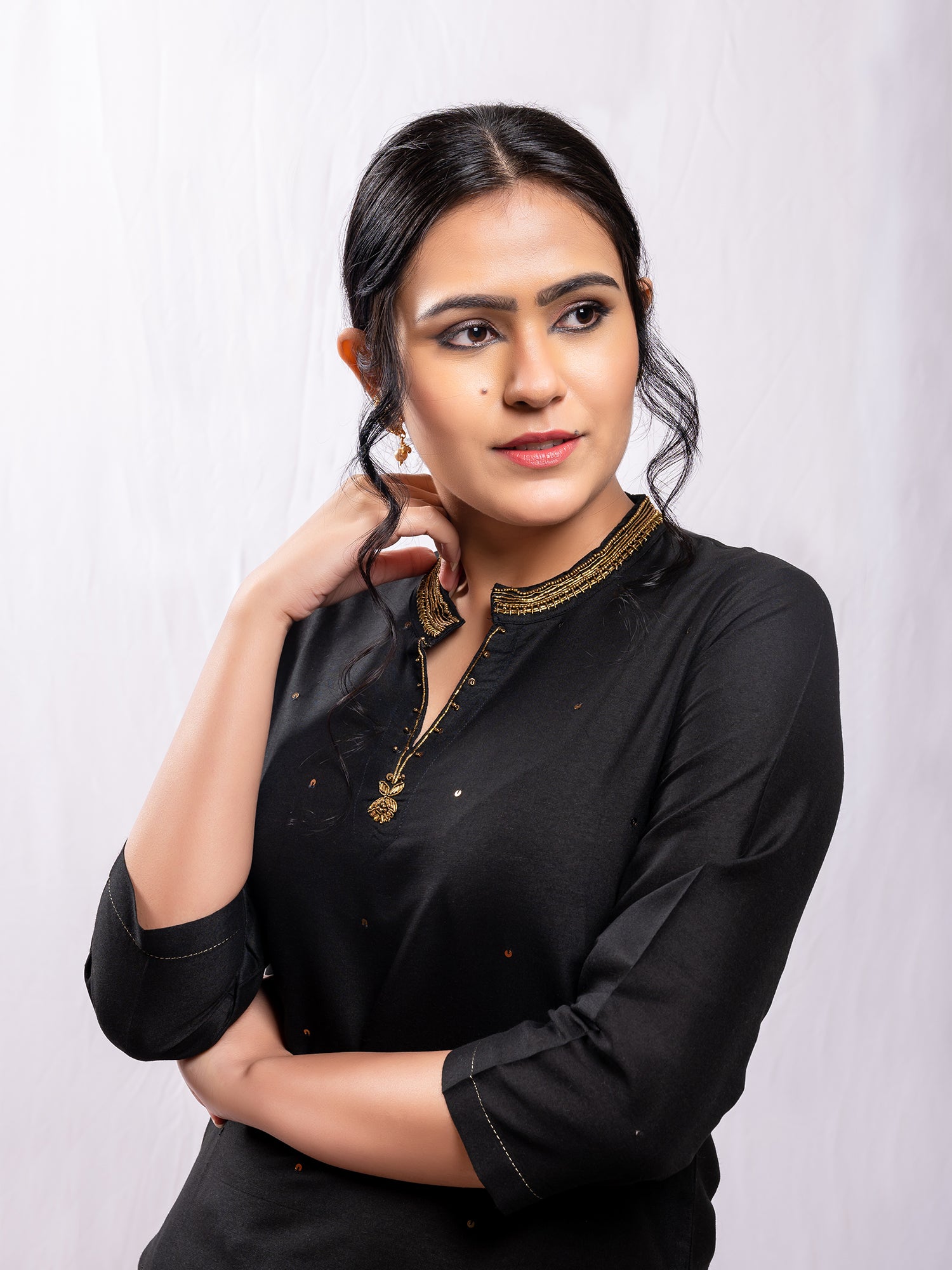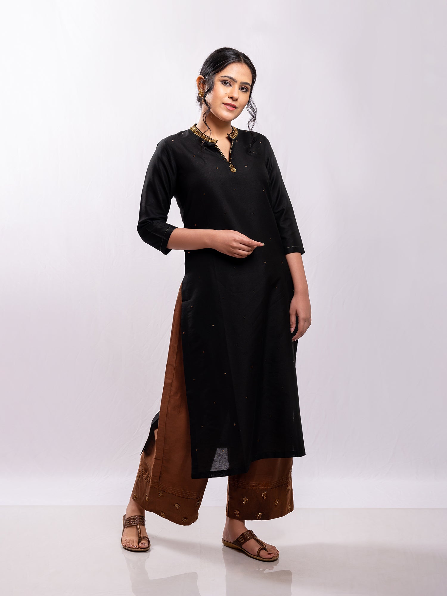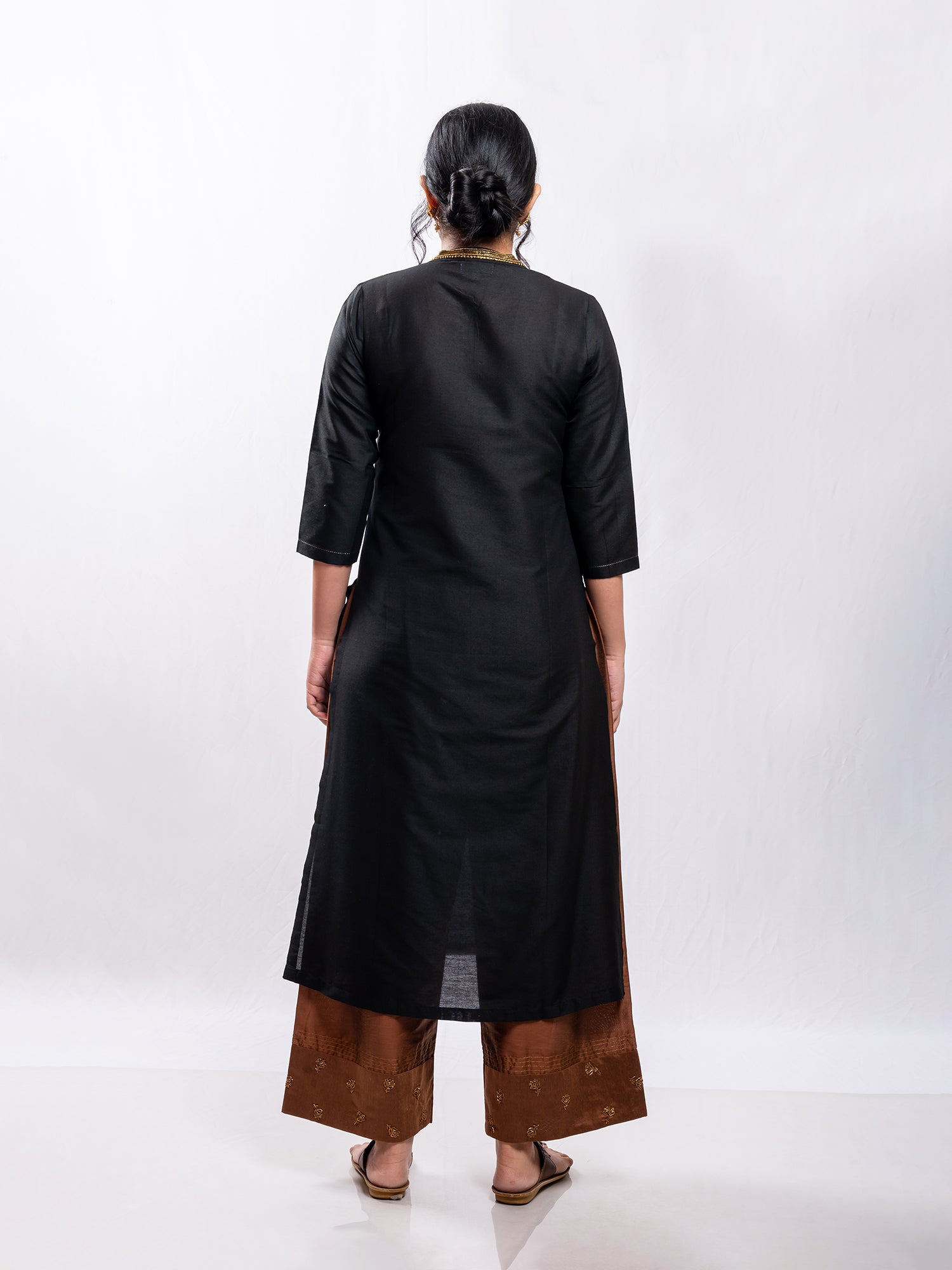 Black cotton silk aari hand embroidery kurta set