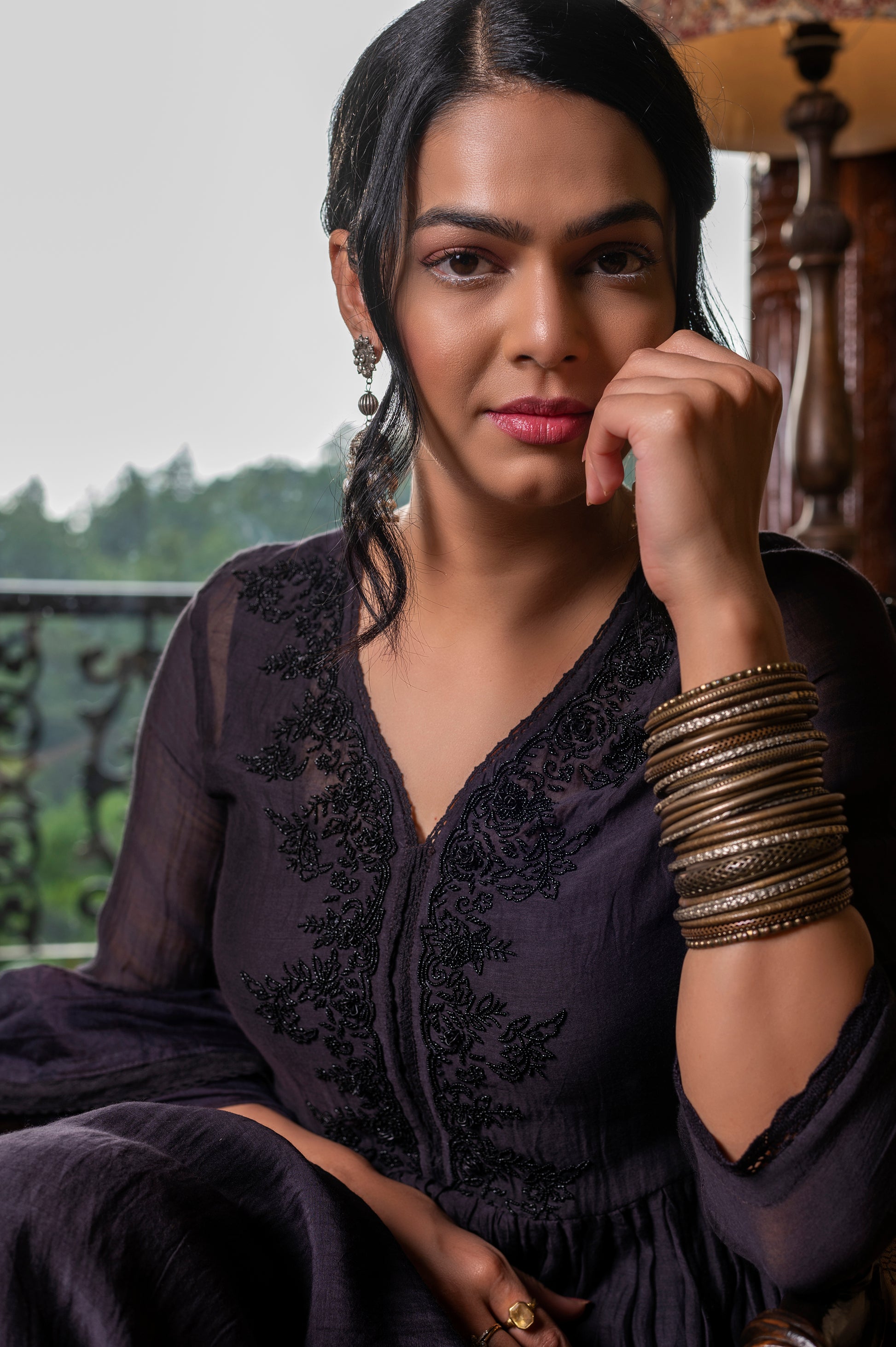 - EMBROIDERY: Beadwork, sequins, and zardozi work. The front yoke of the kurta features floral motifs made of intricate zardozi, sequin, and beadwork around the neckline.