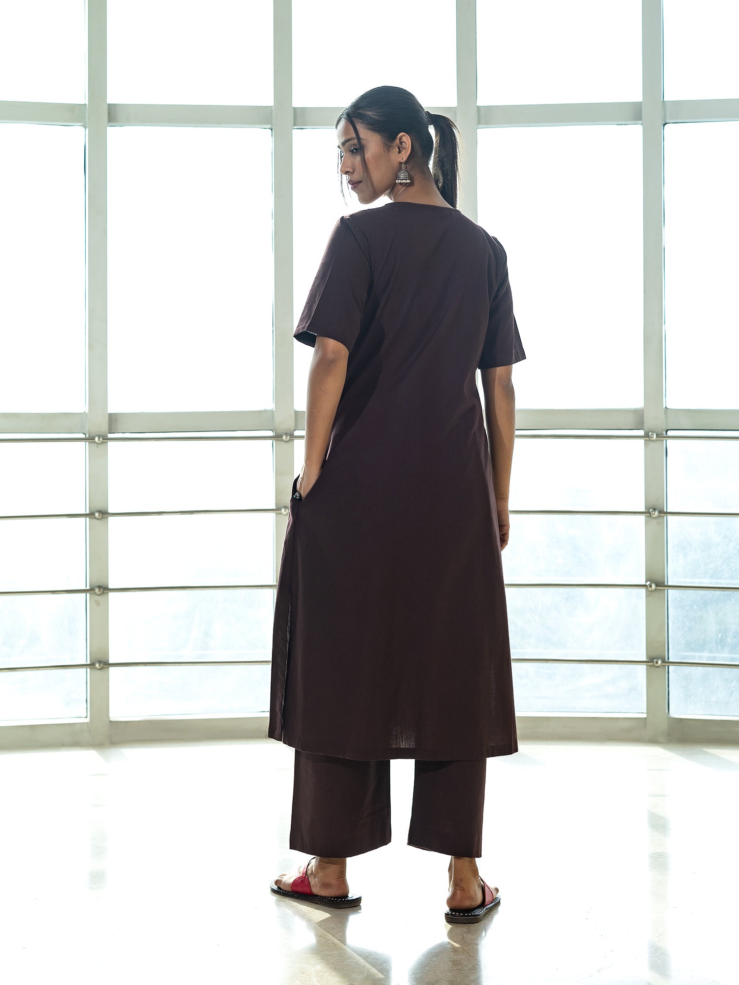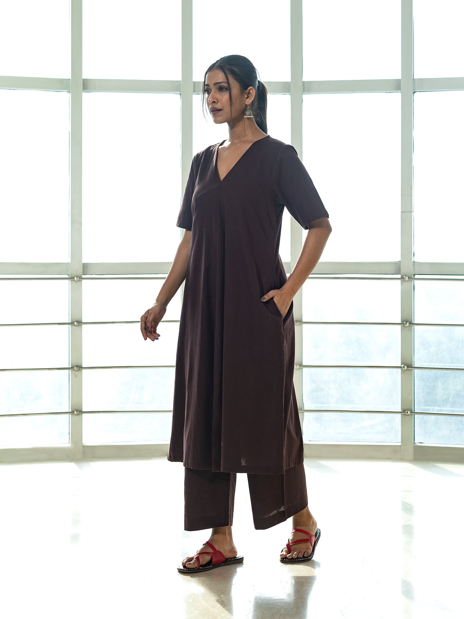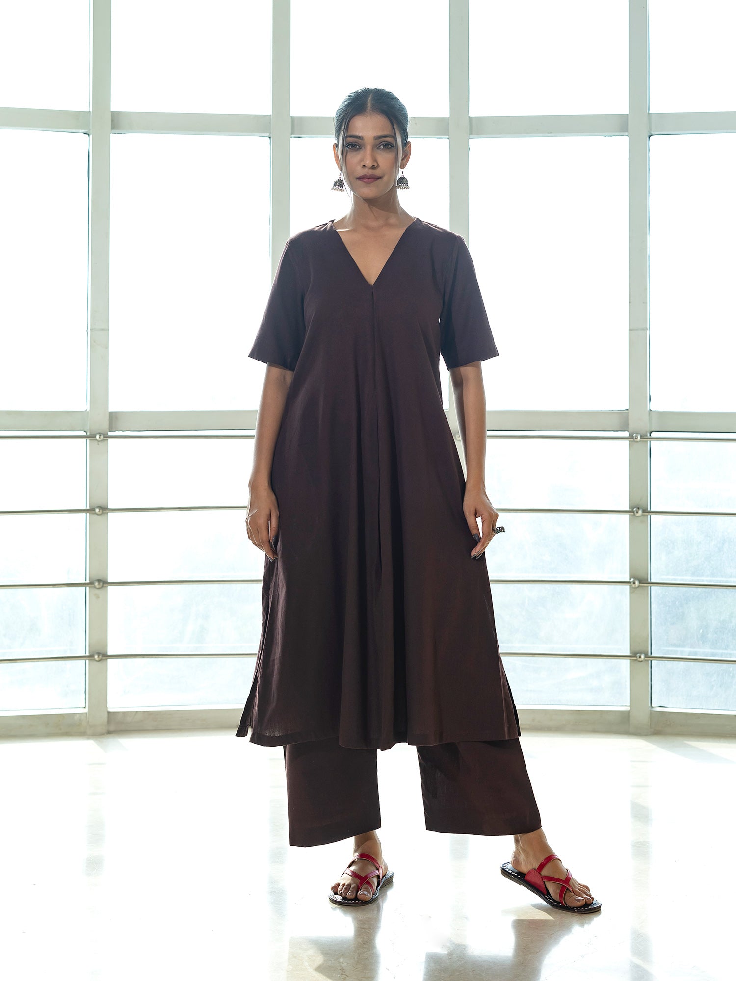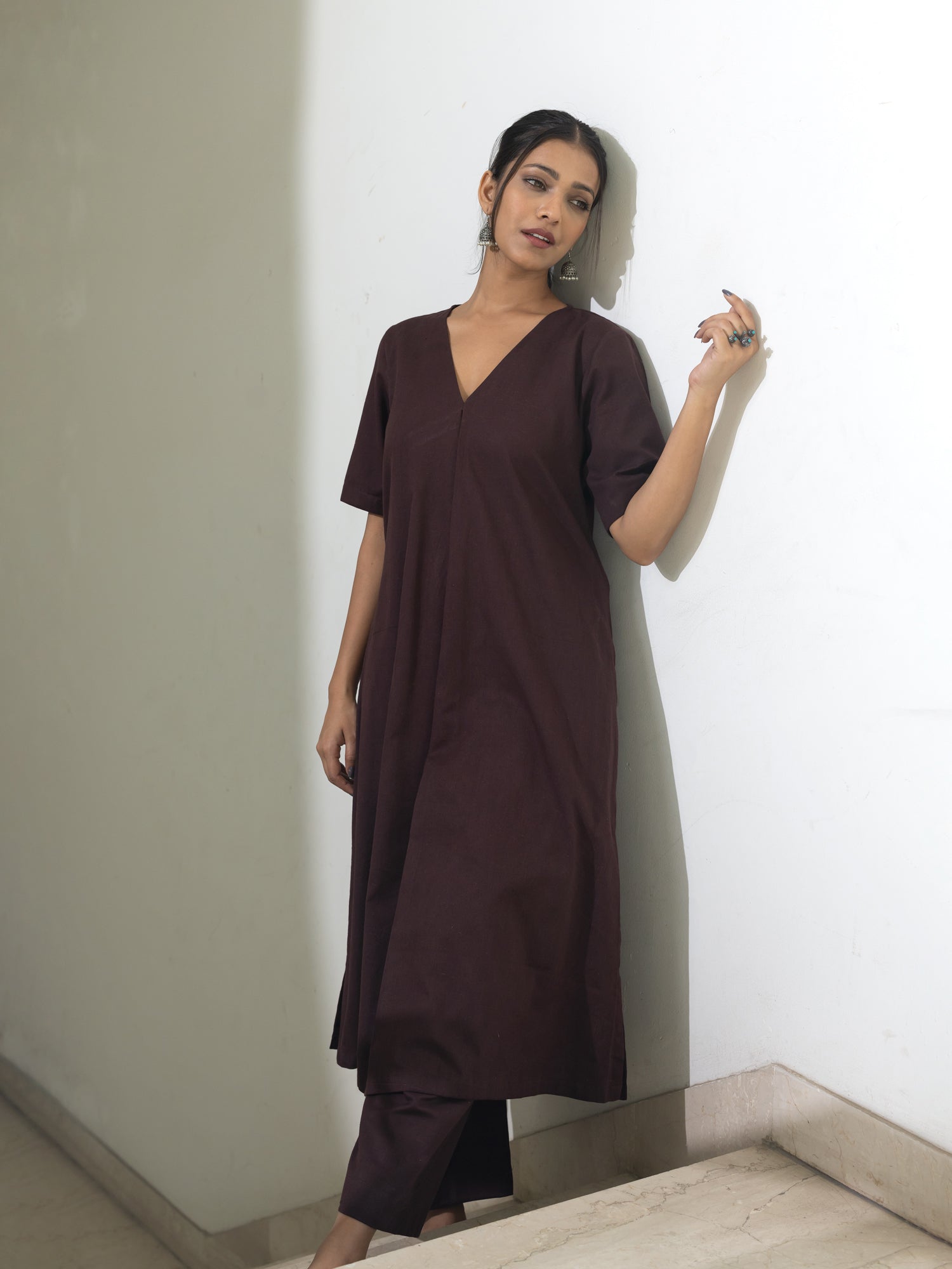 - DETAILS: Cotton linen V neck inverted pleat kurta, side slits for easy mobility and pockets on both sides of the kurta.