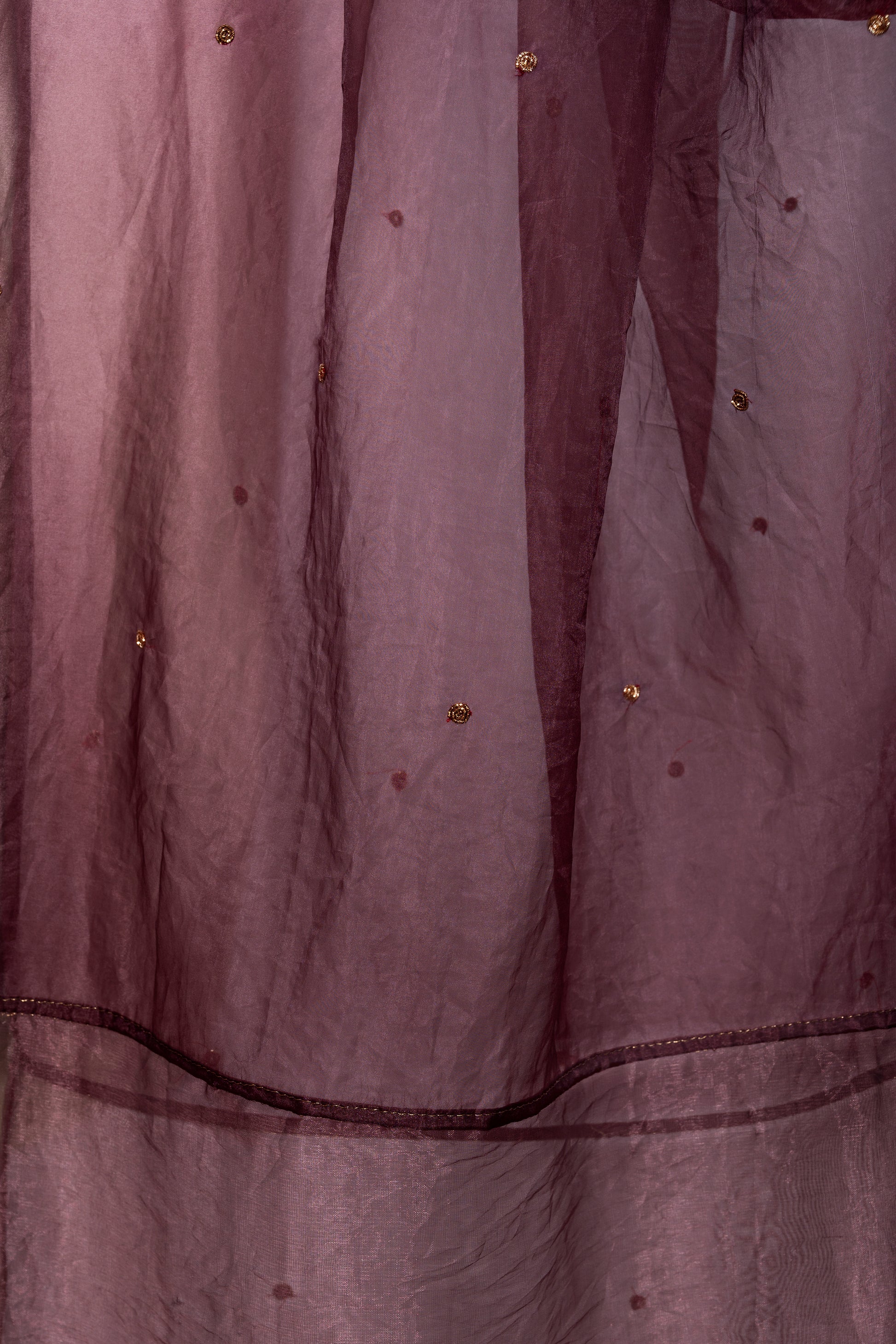 - STYLING TIP: You can style this Brown Silk Organza Dupatta from Label Yati by pairing them with a contrast velvet suit set and accessorising them with a pair of Kundan set and embroidered jutties.