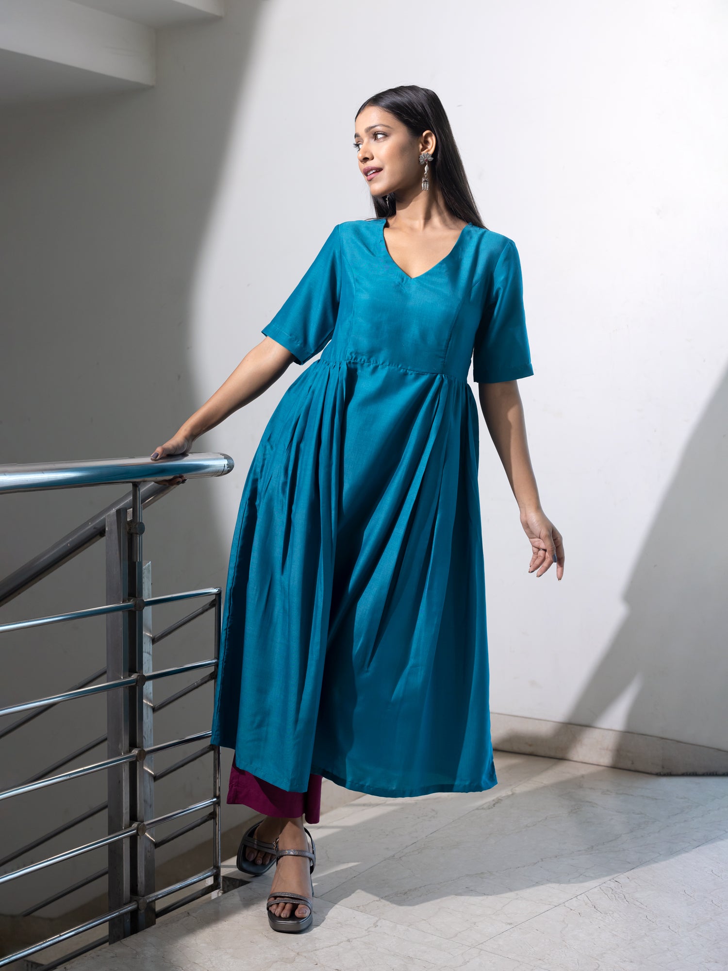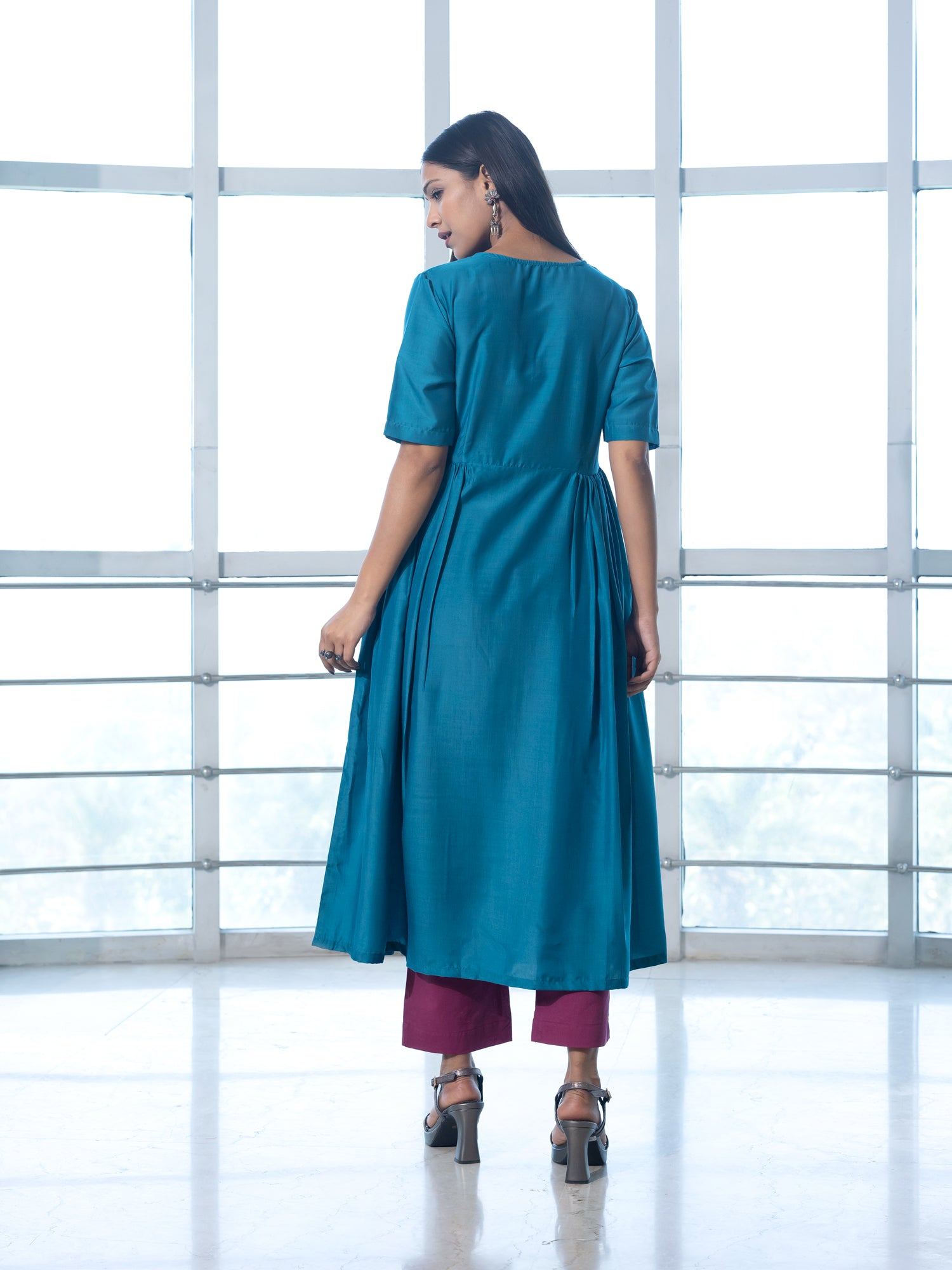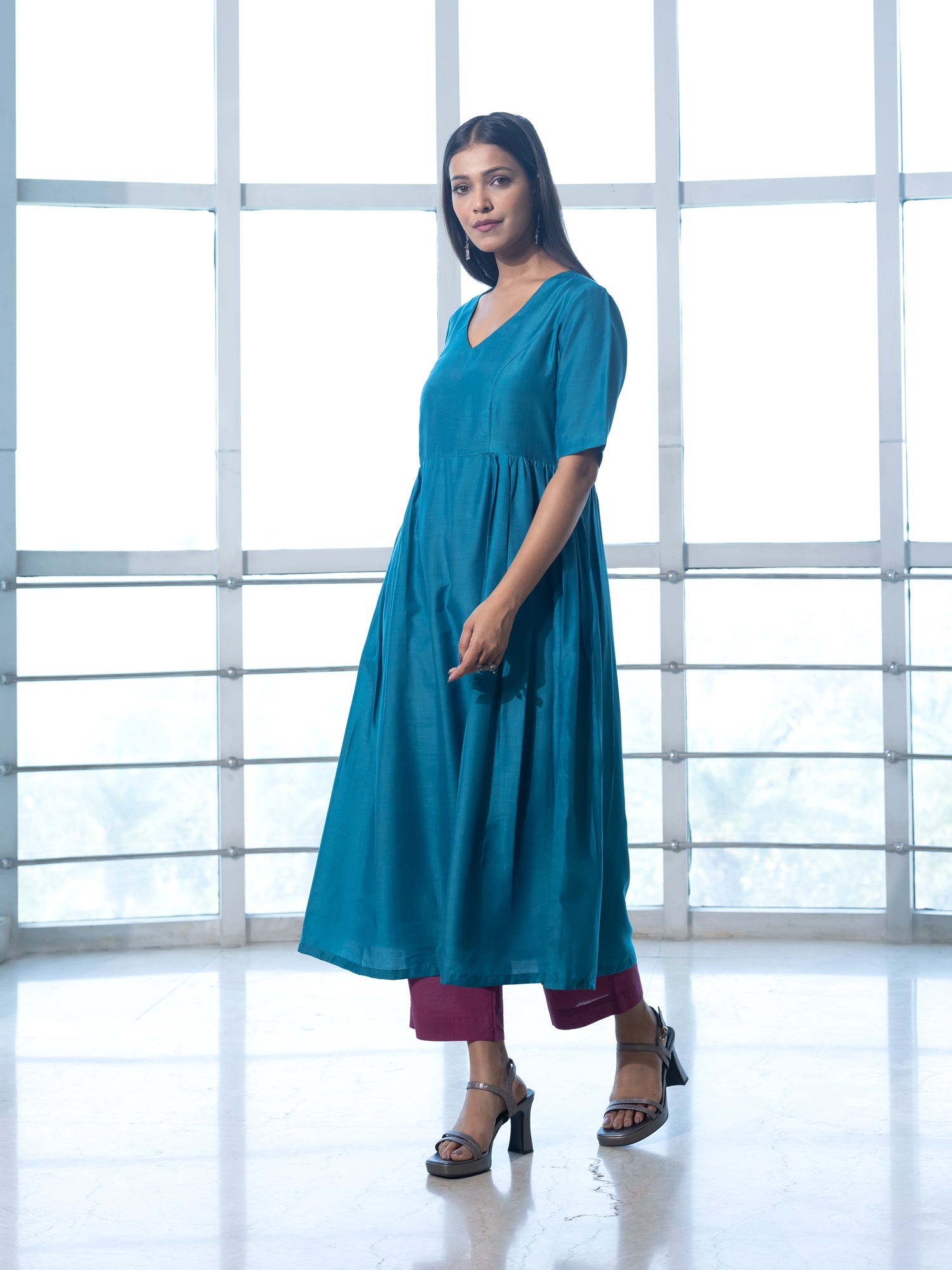 - DETAILS: V neck kurta with side gathers, there is no side slit.