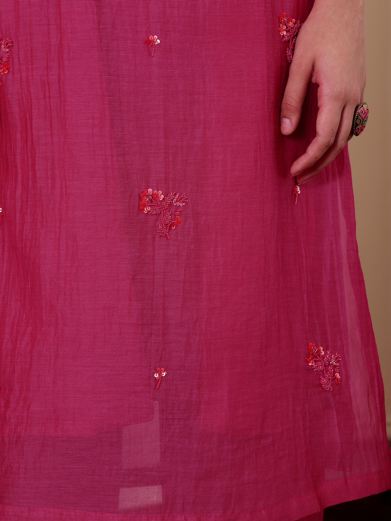 - EMBROIDERY: Beadwork, cutdana, sequins and zardozi work. The front of the kurta features floral motifs made of intricate zardozi, sequin, beadwork, and cutdana running throughout the canvas, and beadwork and cutdana on the sleeves.