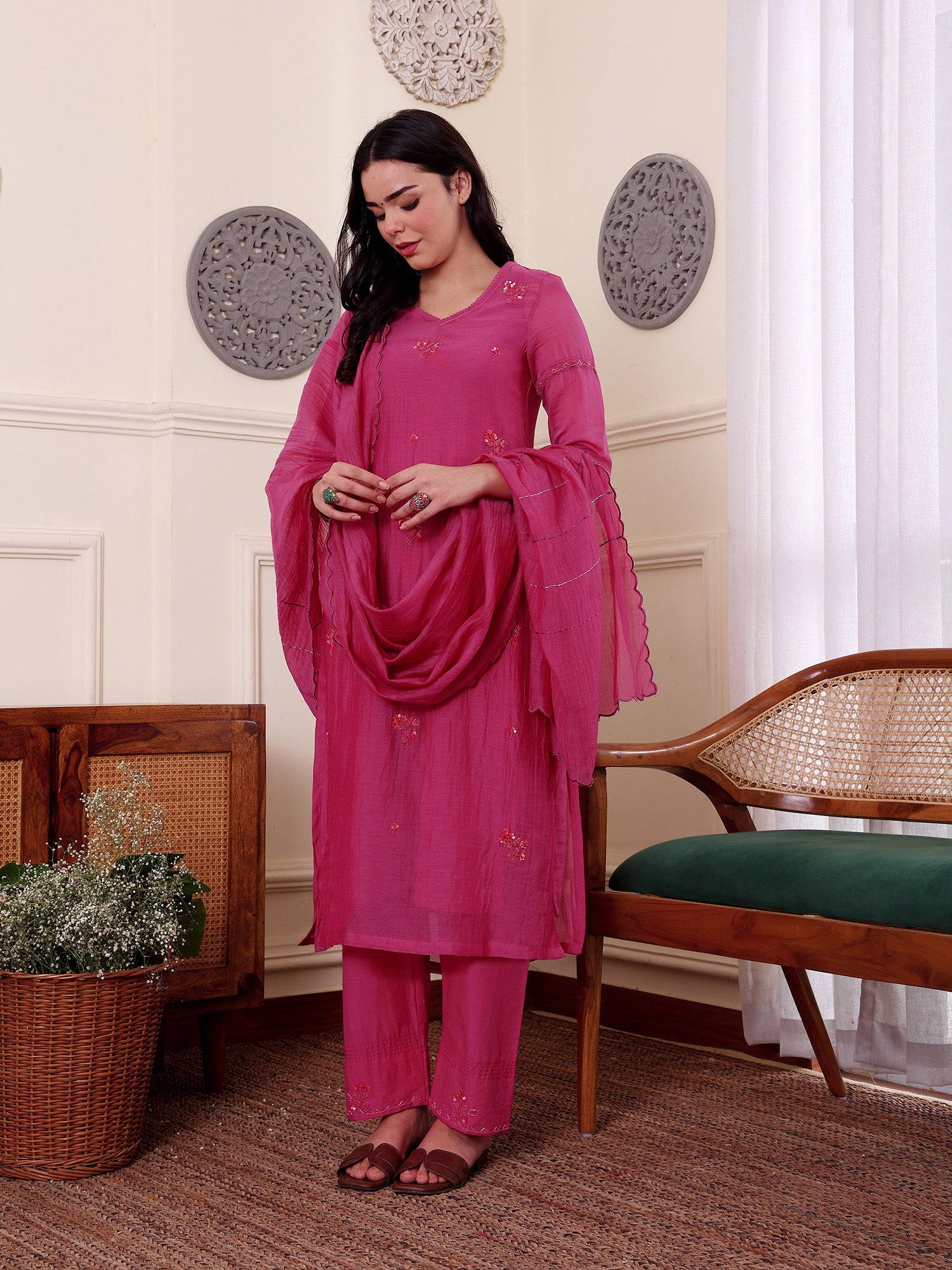 - DETAILS: The mul chanderi dupatta features delicated details of handcut scallops with all over thread work.