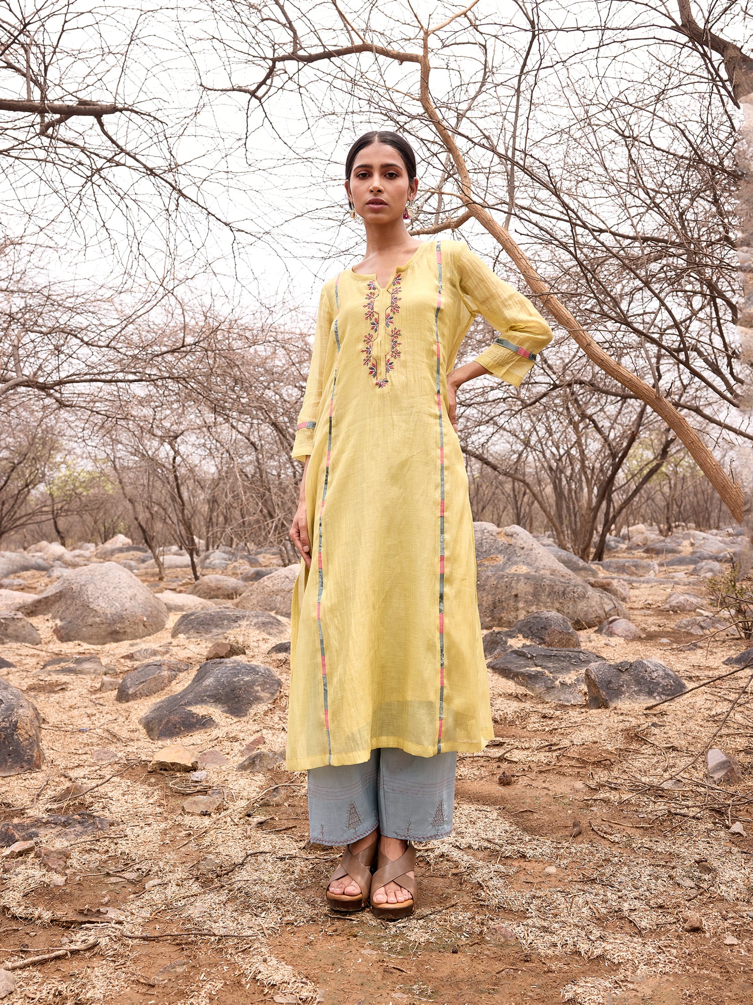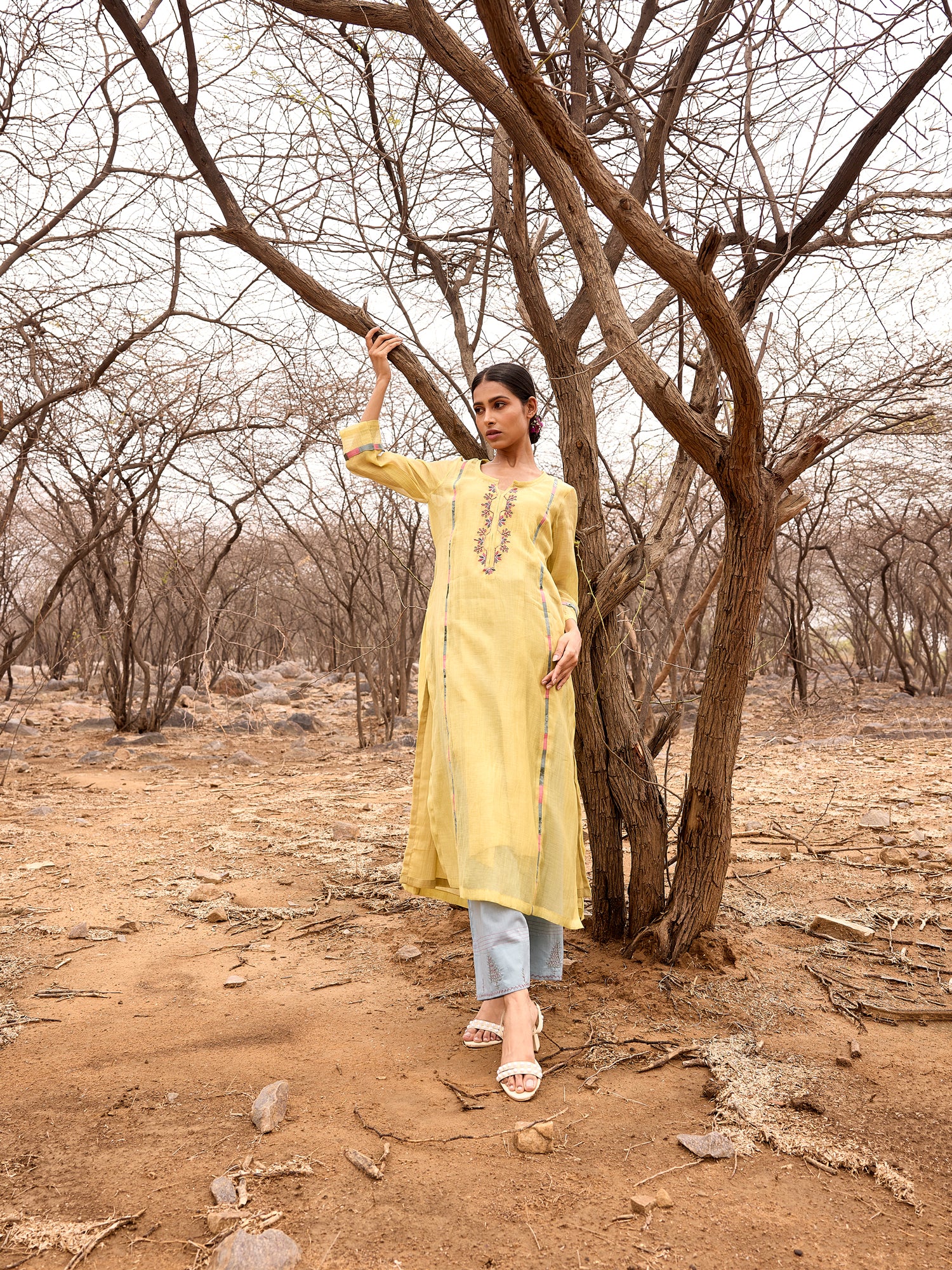 - DETAILS: Persian thread work with contrat fabric insertion at side kalies and on the sleeves, and side slits for easy mobility.
