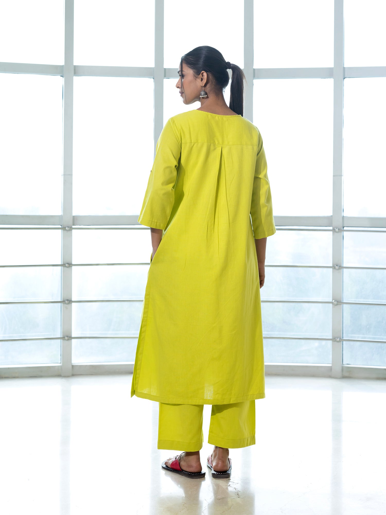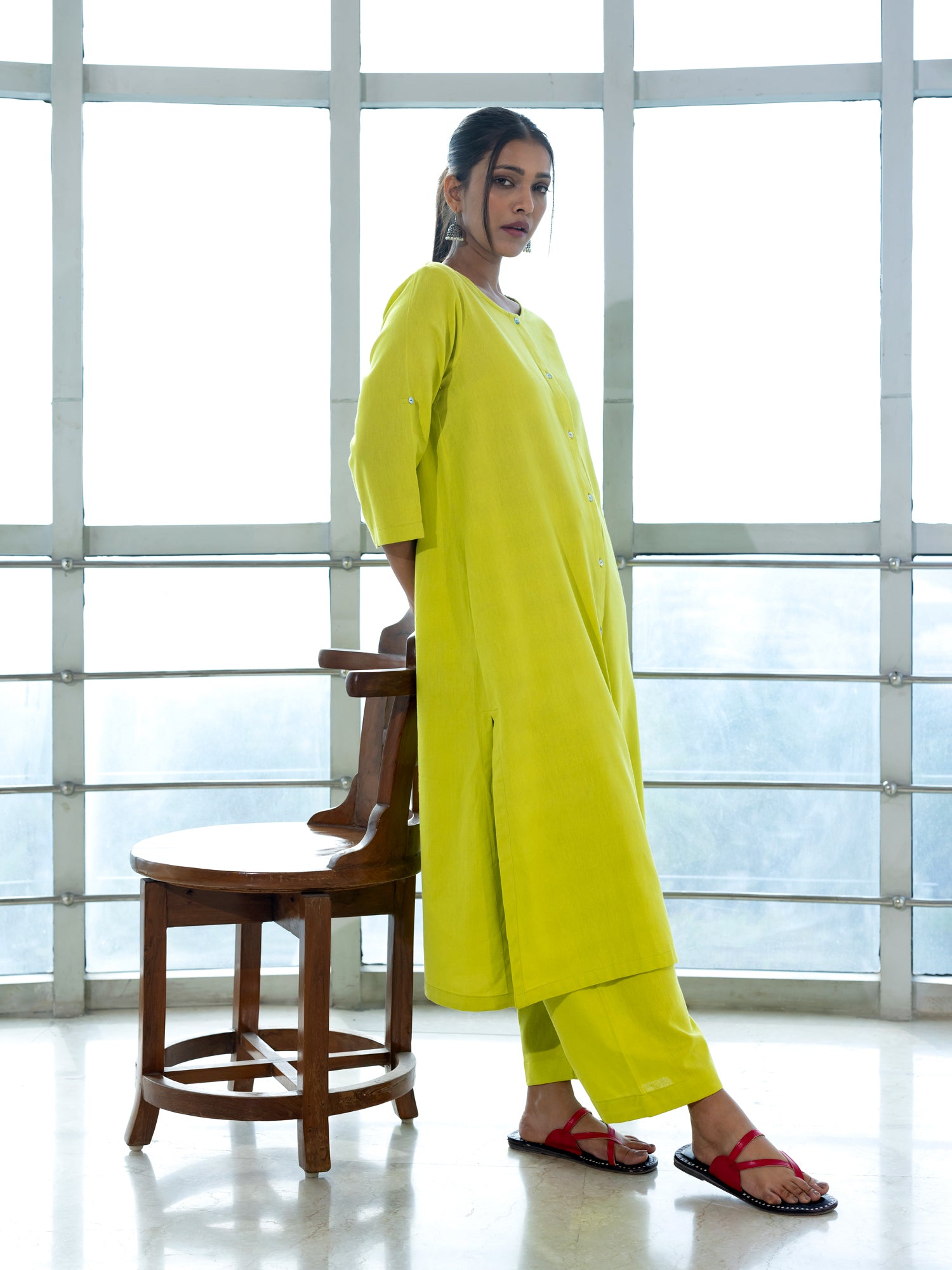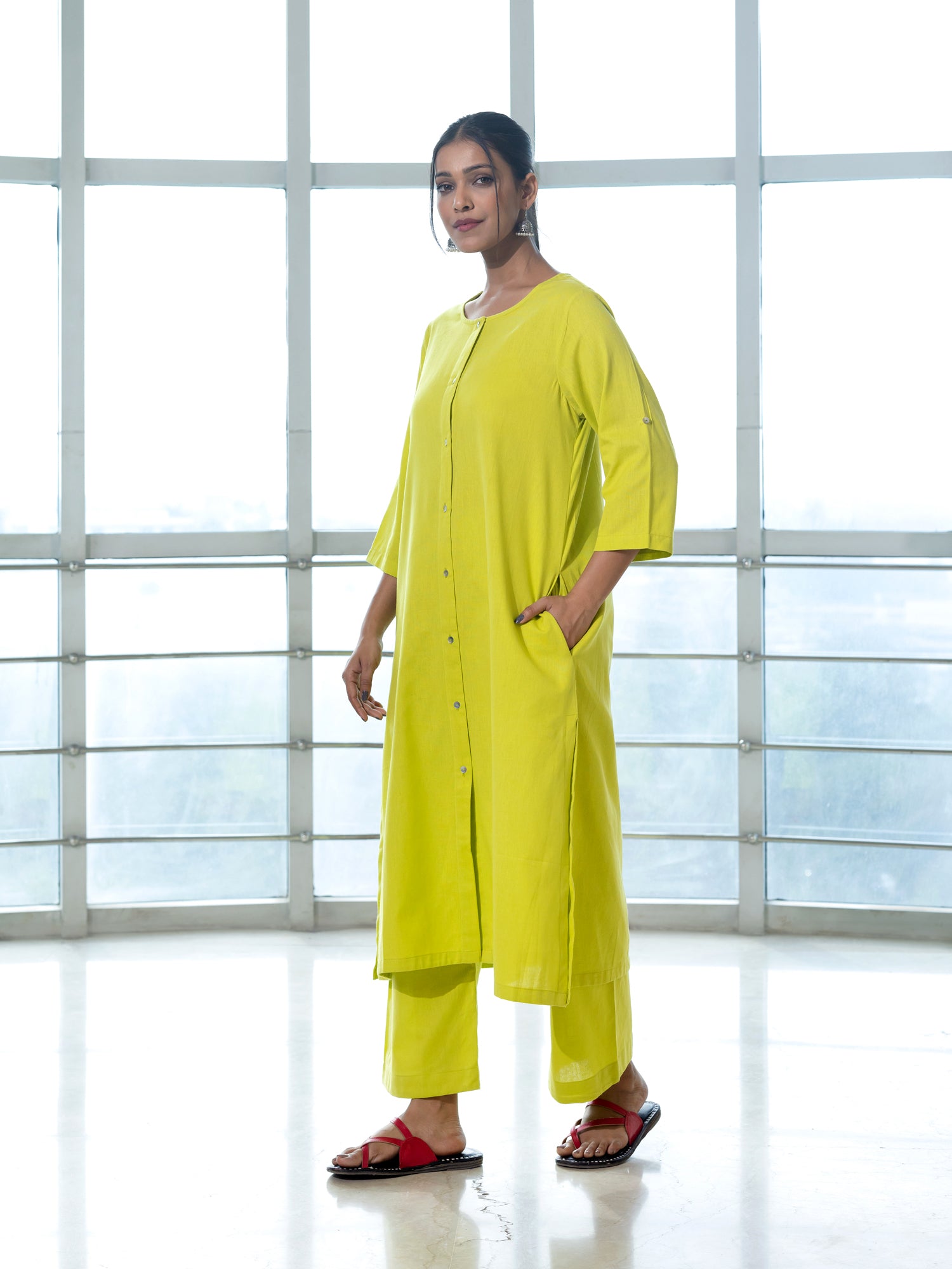 - DETAILS: Placket with shell button detailing at the neck, side slits for easy mobility and pockets on both sides of the kurta.