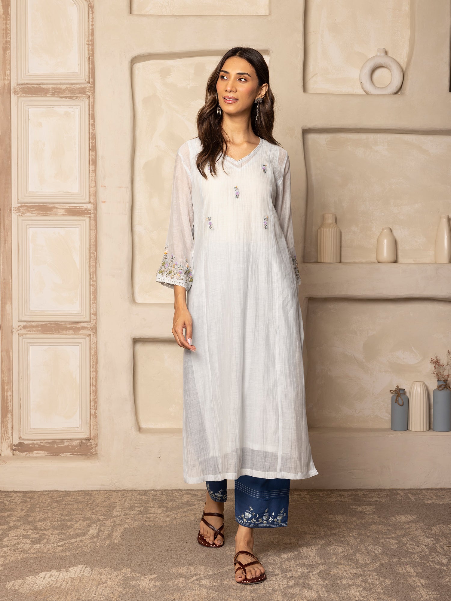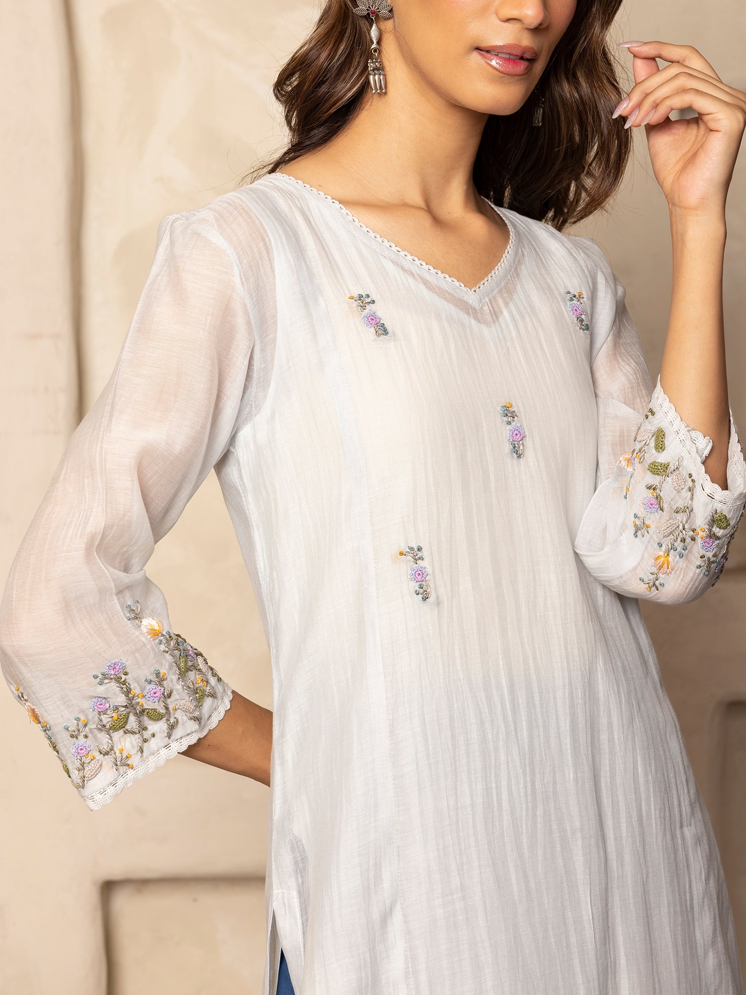 - DETAILS: Thread with crochet hand embroidery at the front and sleeves with beautiful lace detailing and side slits for easy mobility.