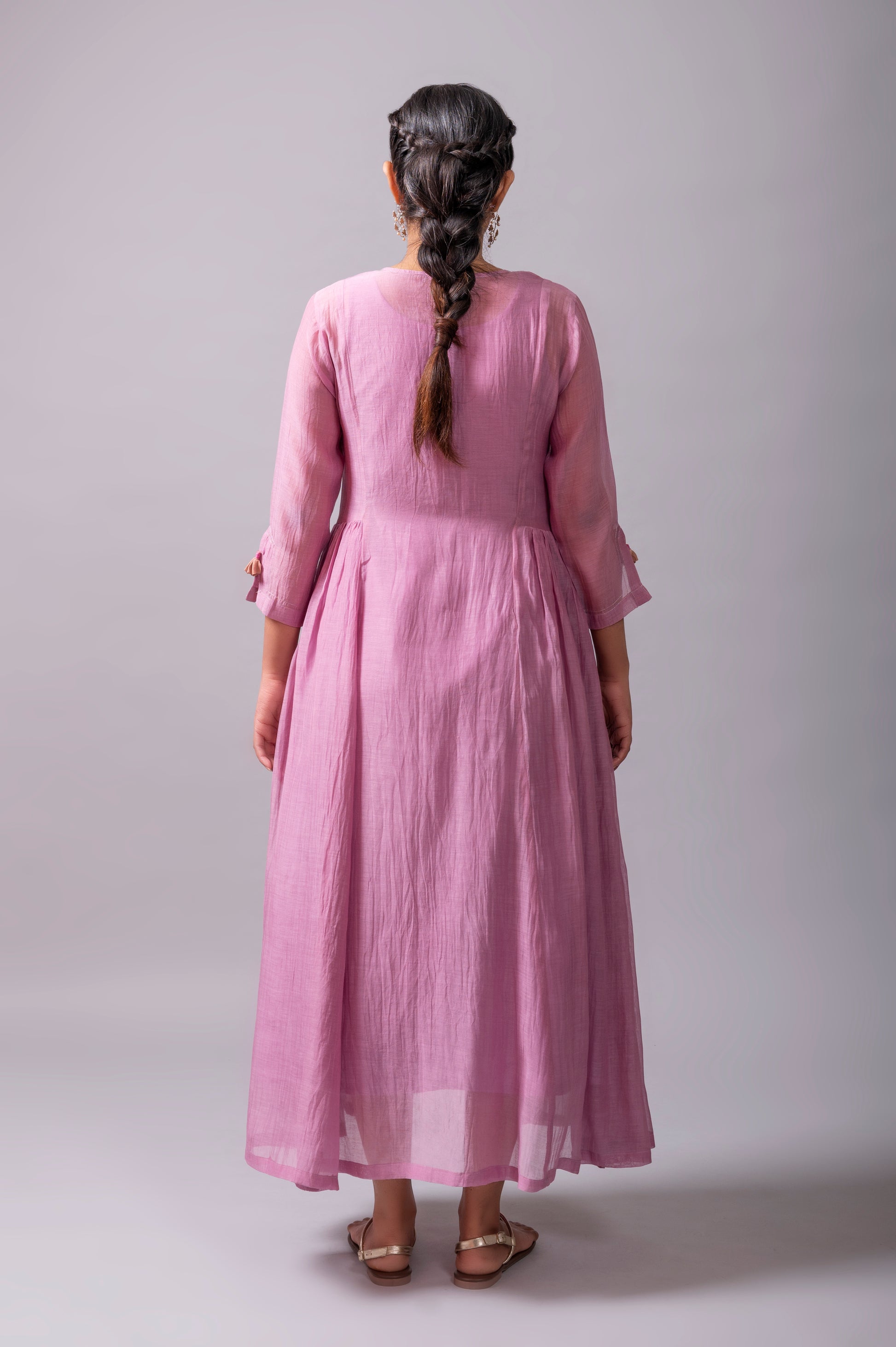 Mauve Fine Chanderi Flared Dress