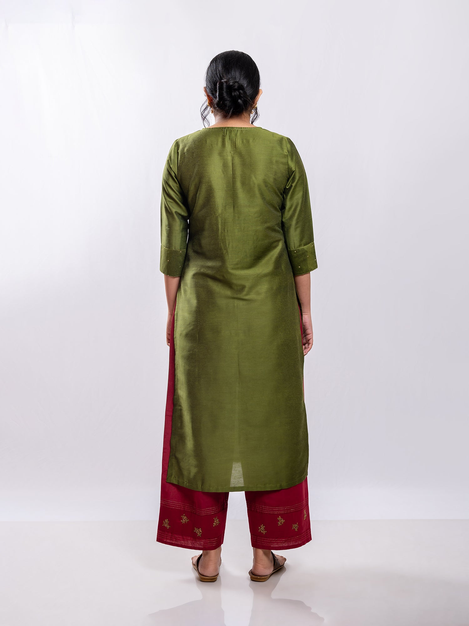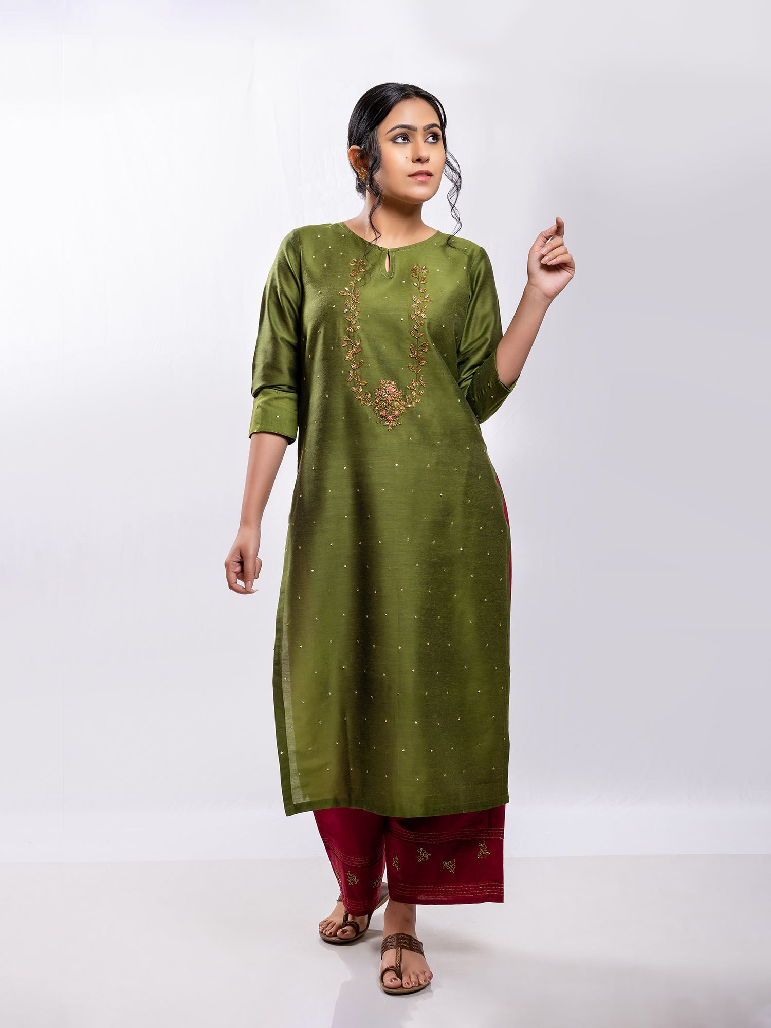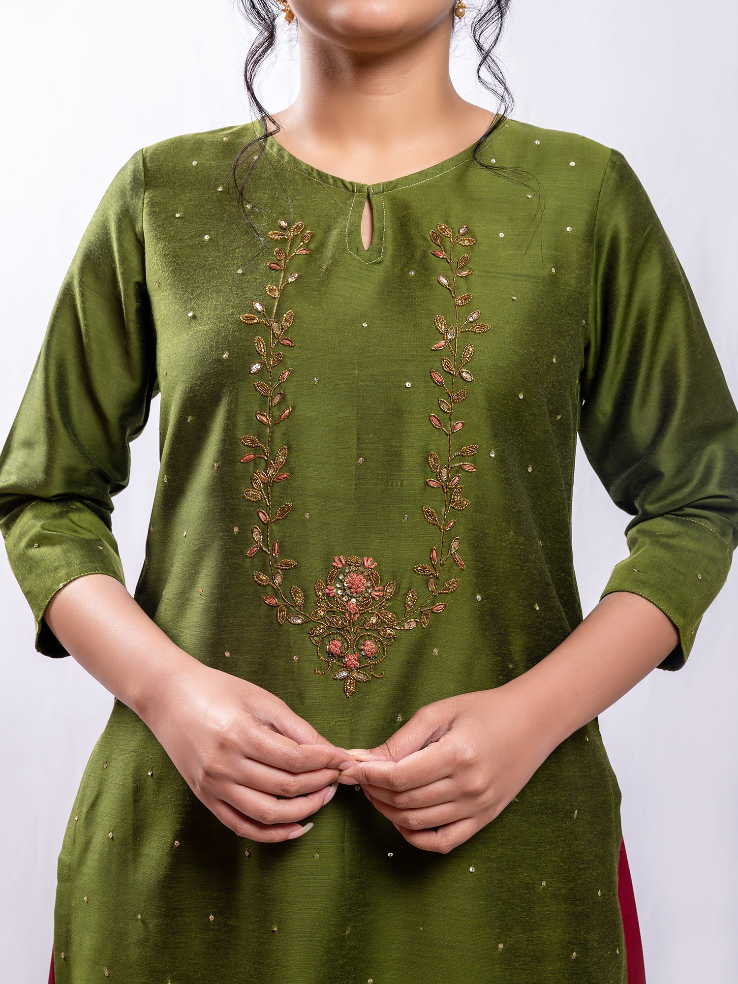 Mehndi green cotton silk aari hand embroidery kurta