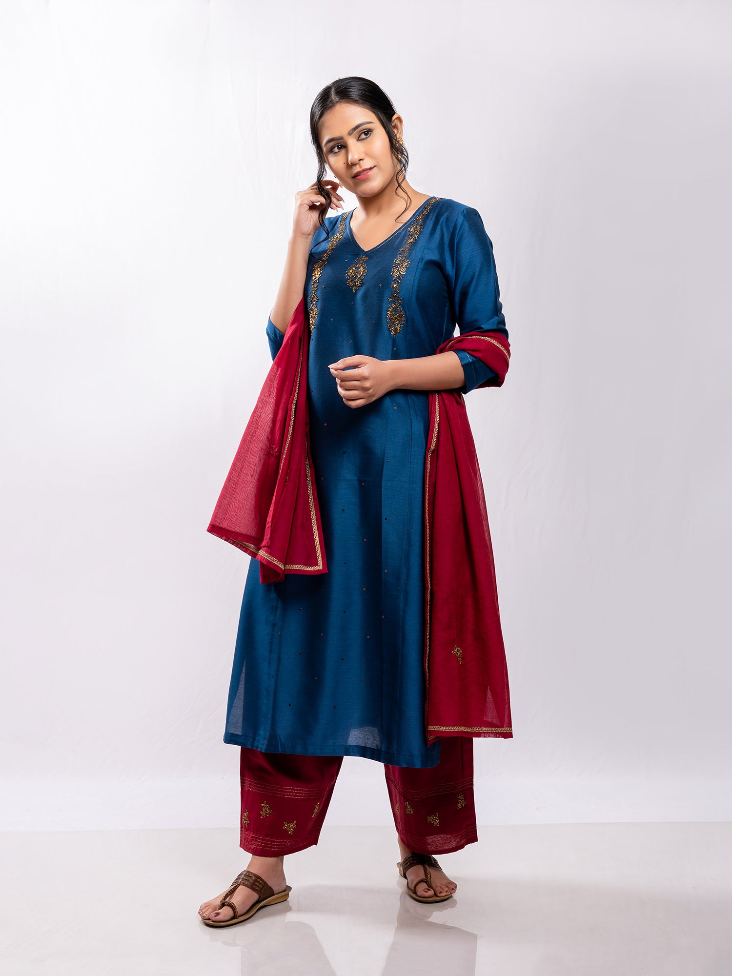 - DETAILS: The cotton chanderi dupatta features beautiful aari hand work.