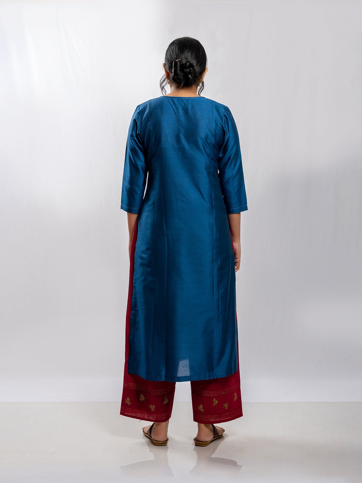 - DETAILS: The elasticated waist comes with a front tie-up detail and the pant bottom comes with aari embroidery and quilting.