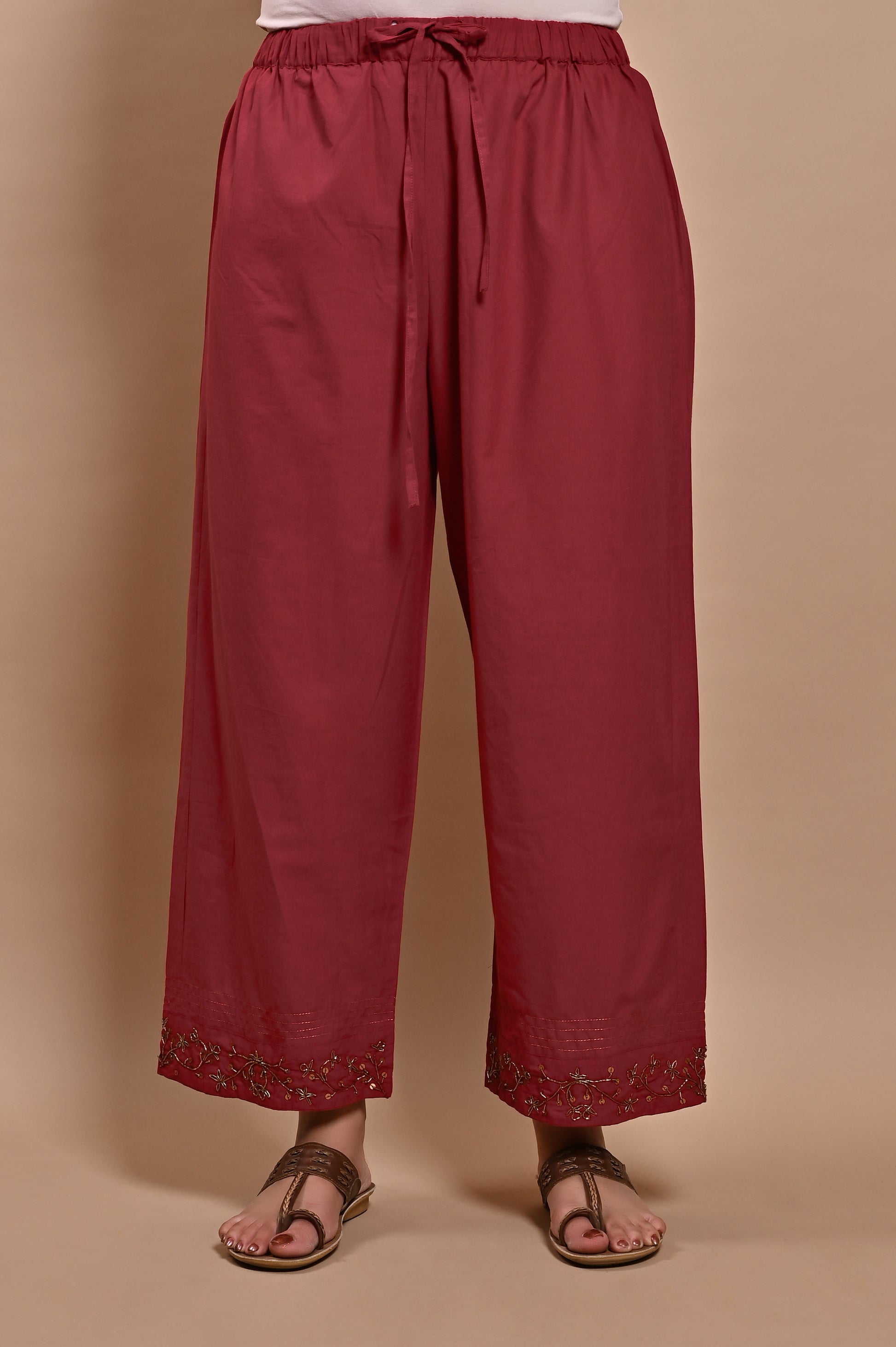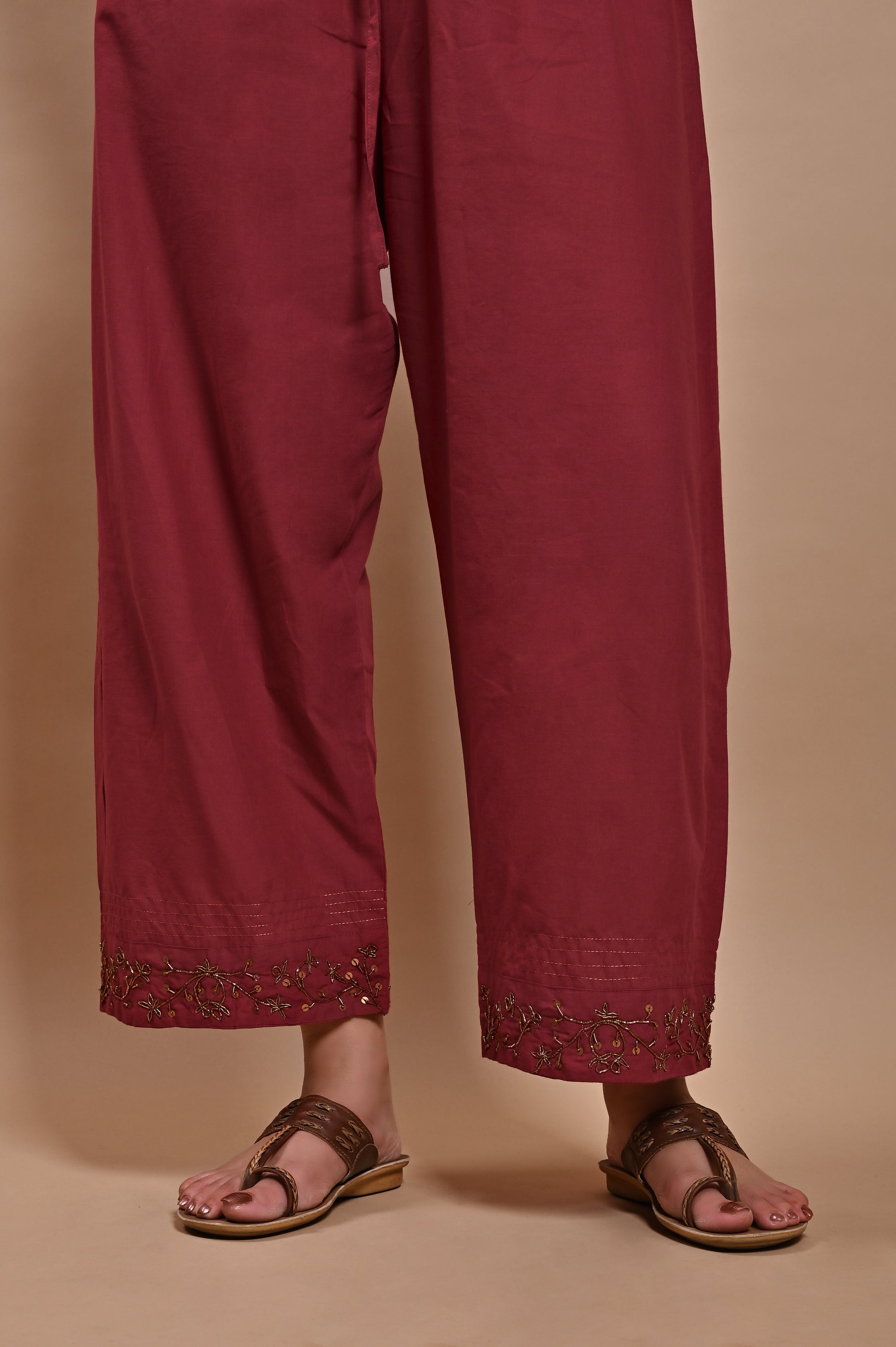 - EMBROIDERY: Zardozi detailing and zari quilting. The pant bottom comes with zardozi embroidery and zari quilting.