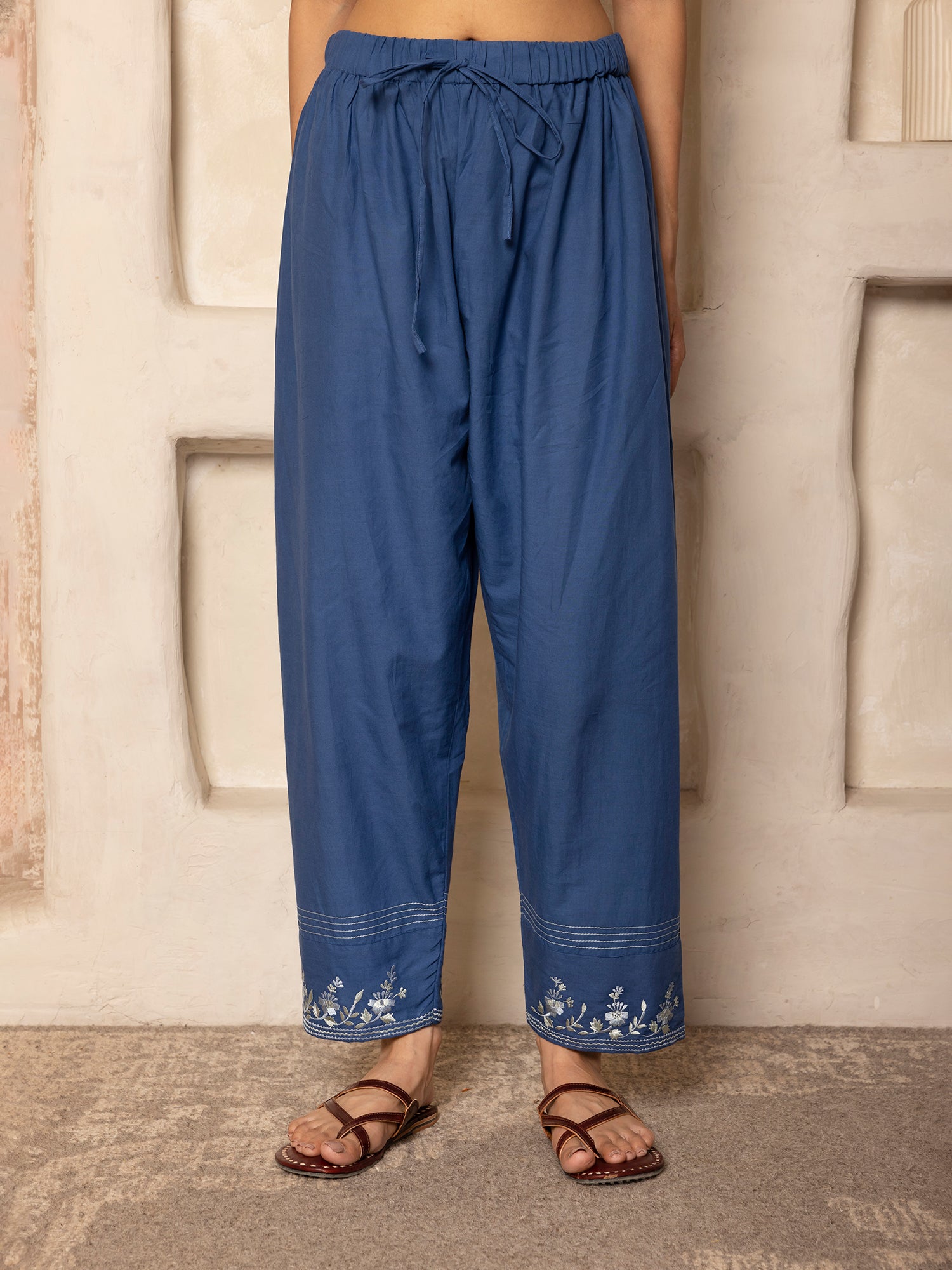 - DETAILS: The elasticated waist comes with a front tie-up detail and the pant bottom comes with thread embroidery and quilting.