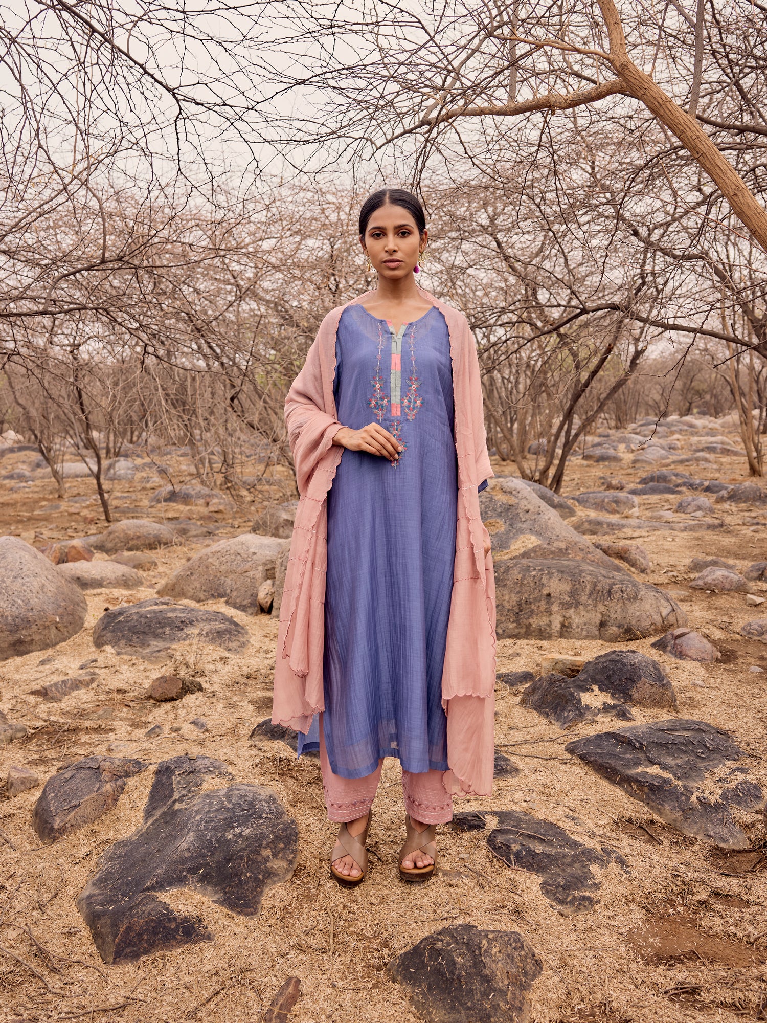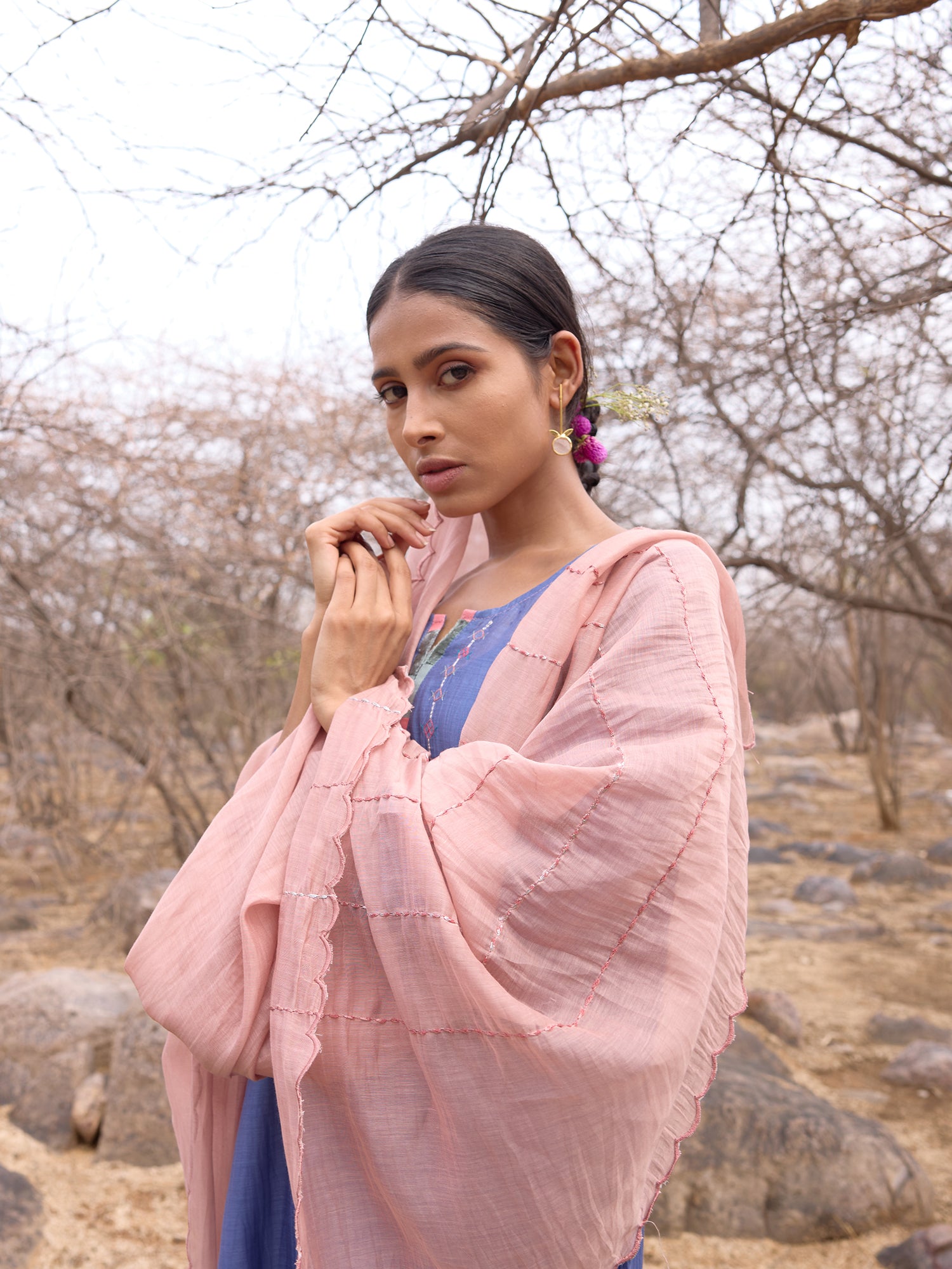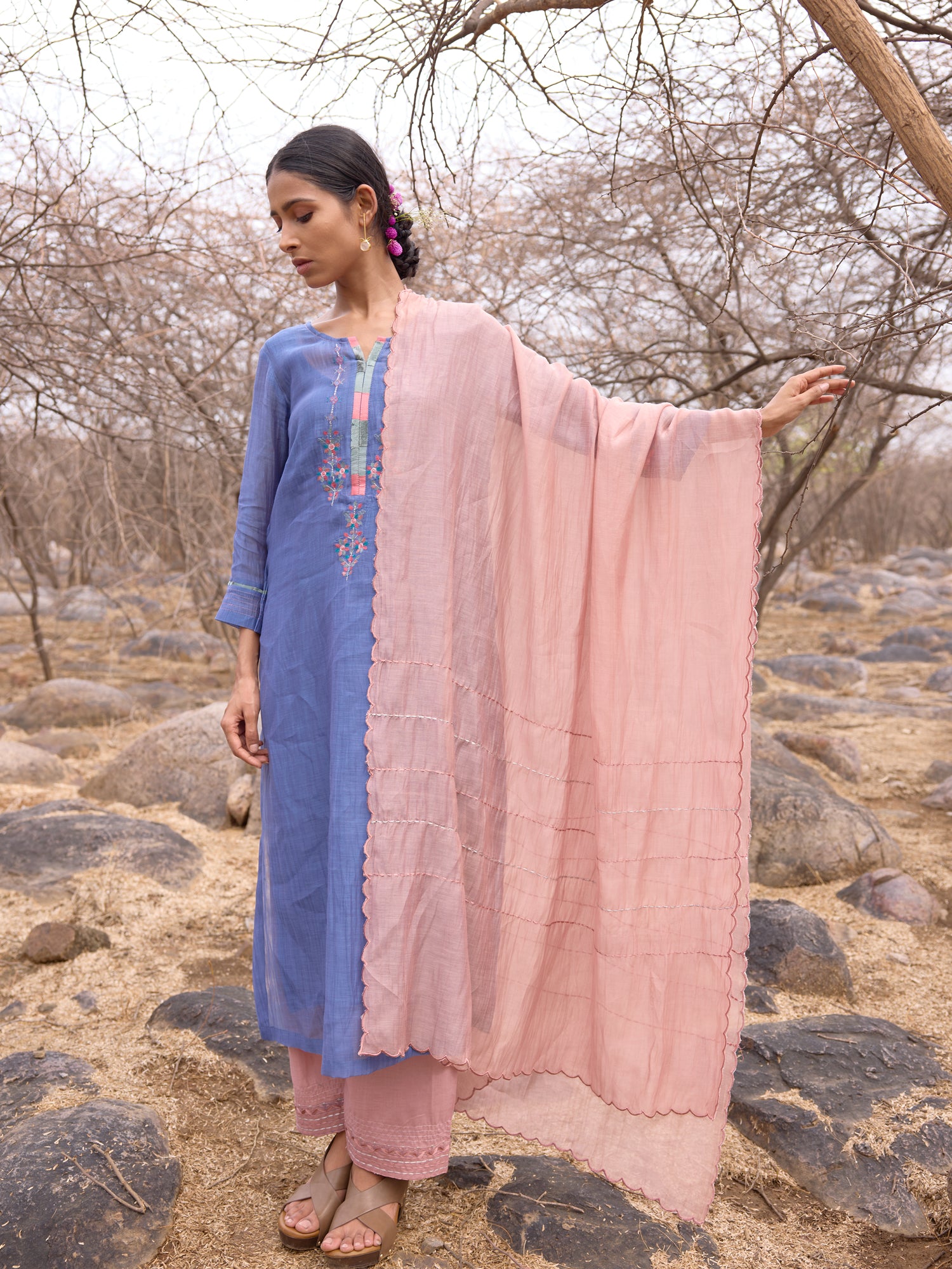 - DETAILS: The mul chanderi dupatta features delicated details of handcut scallops.