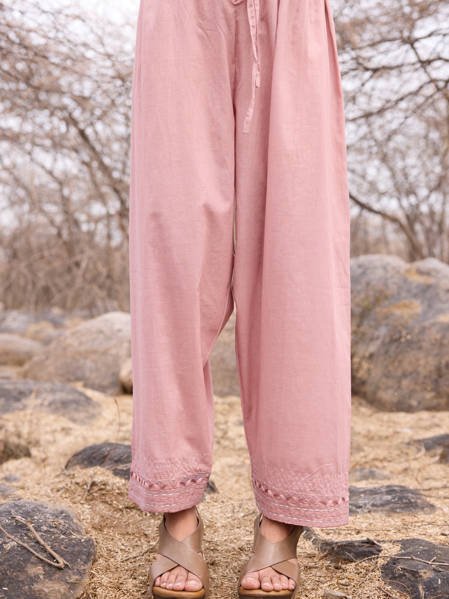 - DETAILS: The elasticated waist comes with a front tie-up detail and the pant bottom comes with thread embroidery featuring persian motifs and contrast thread quilting.