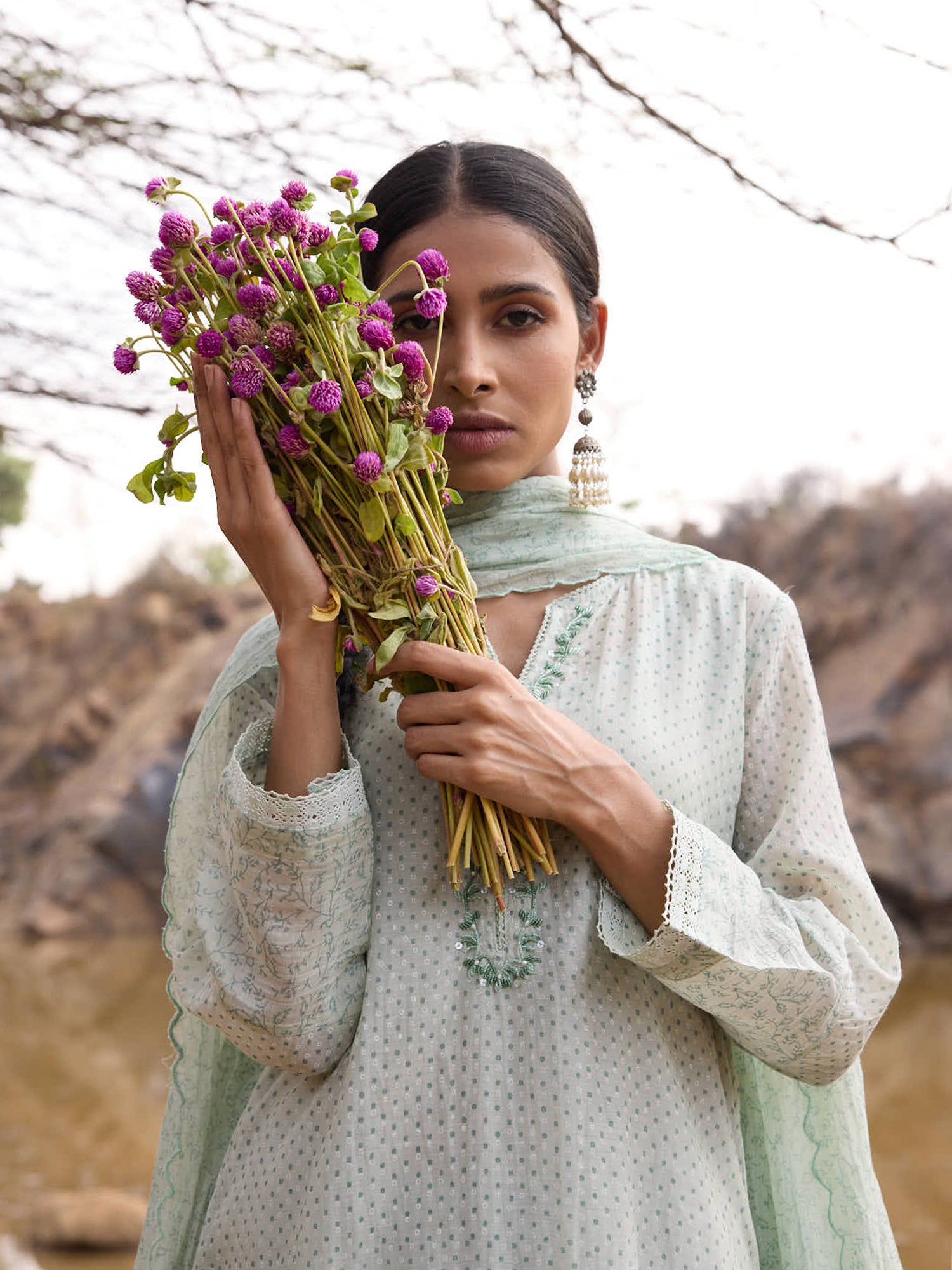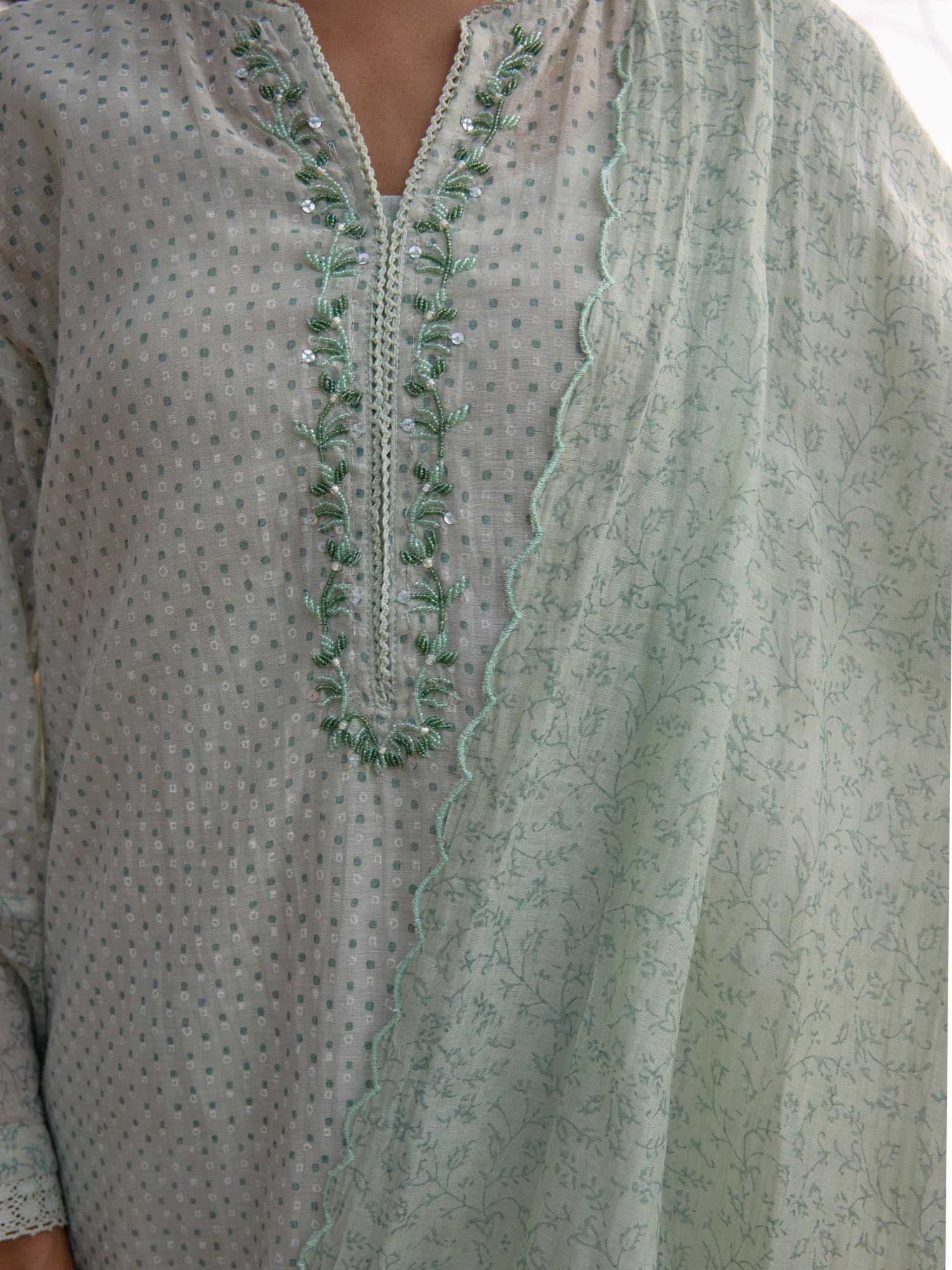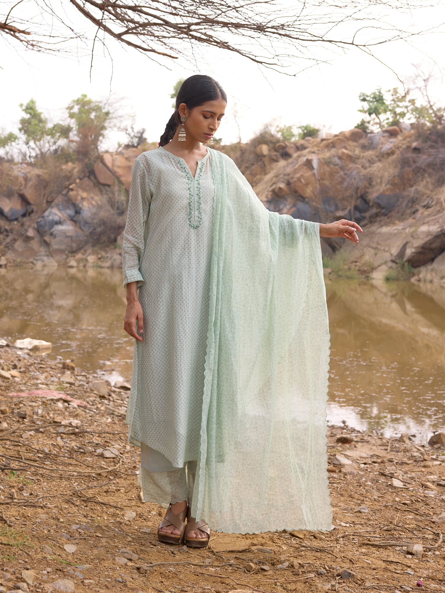 Sky Blue Printed mul Chanderi Beadwork Kurta