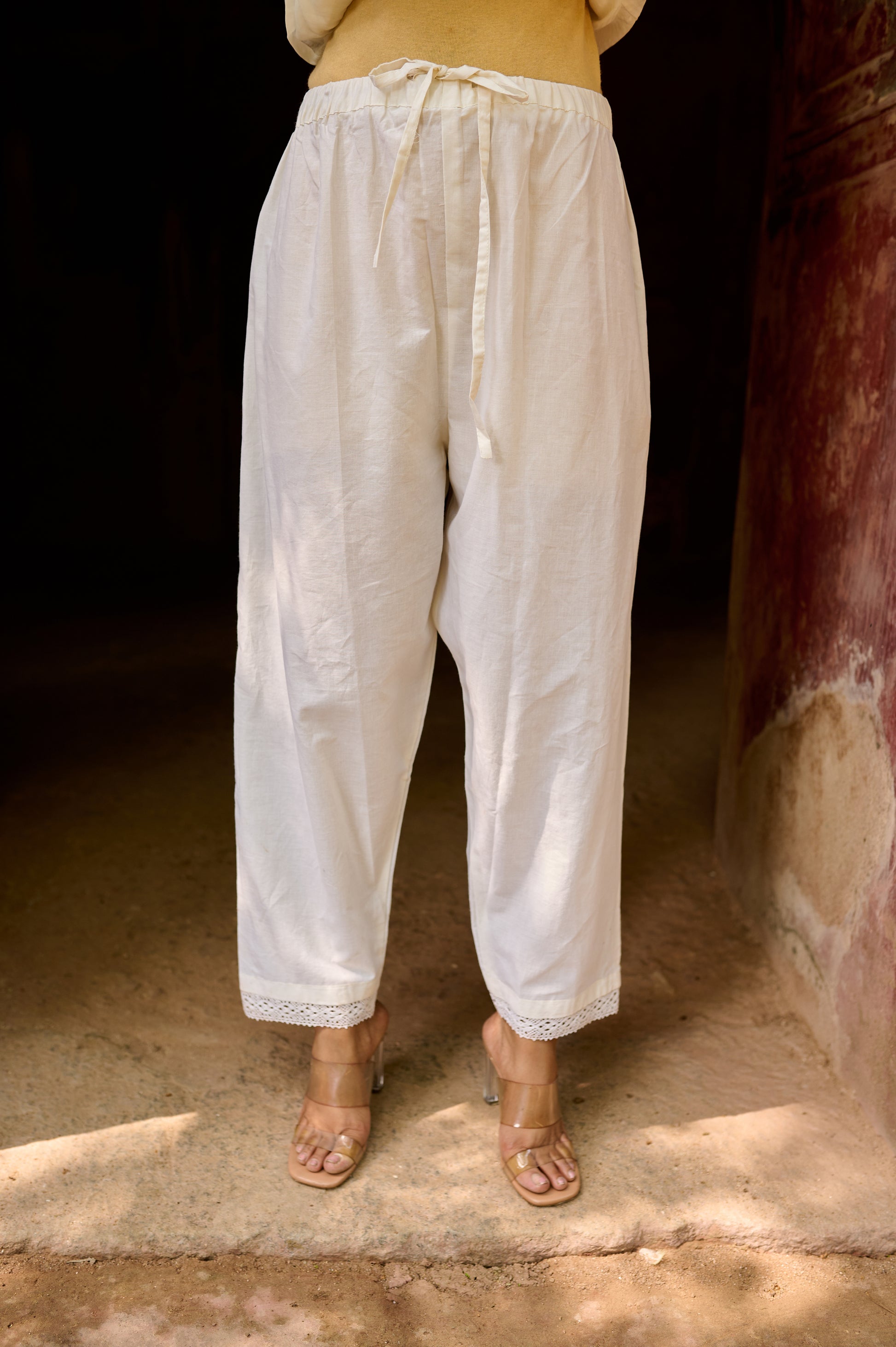 - DETAILS: The elasticated waist comes with a front tie-up detail and matching crochet lace insertion at the bottom hem.