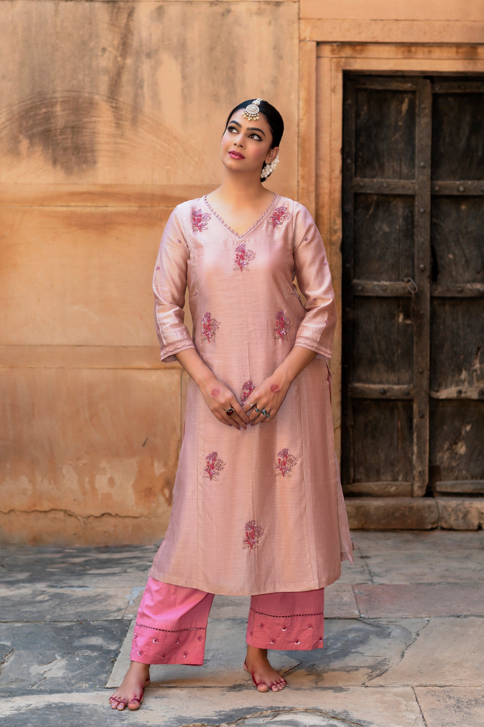- EMBROIDERY: Beadwork, sequins and zardozi work. The front features floral motifs made of intricate zardozi, sequin, beadwork running throughout the center panel along with crochet lace detailing with sequins work on the sleeves and around the neckline.