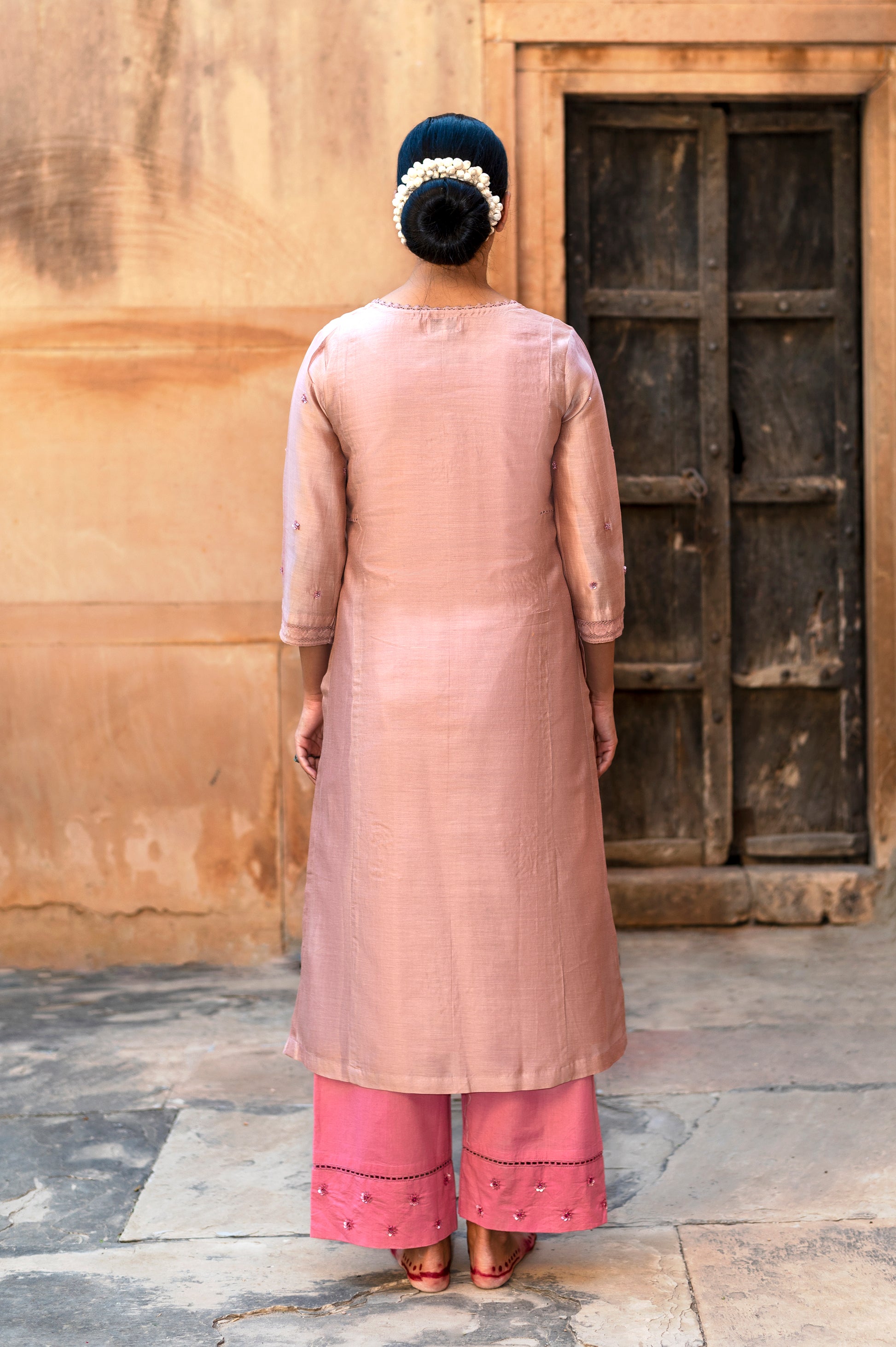- DETAILS: Matching lace insertion at the neckline and at sleeve opening and side slits for easy movement.