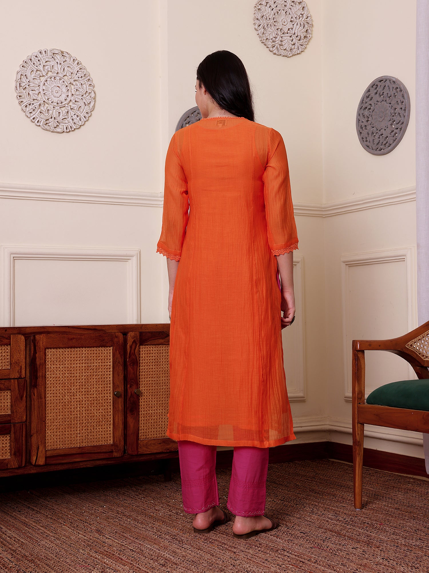 - DETAILS: Matching lace insertion at the neckline and at sleeve opening and side slits for easy mobility.