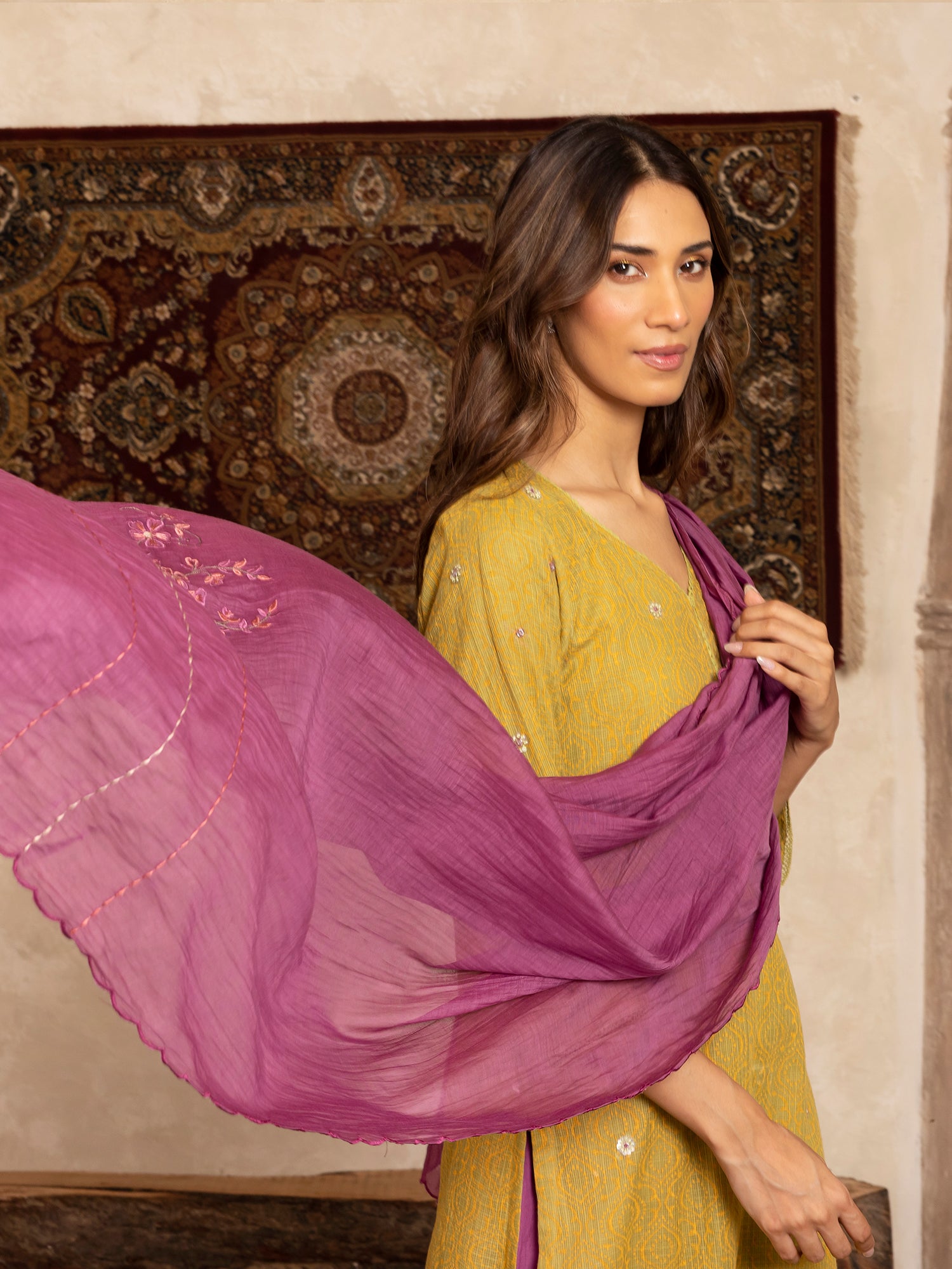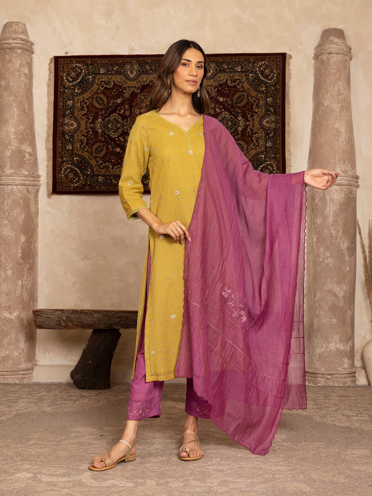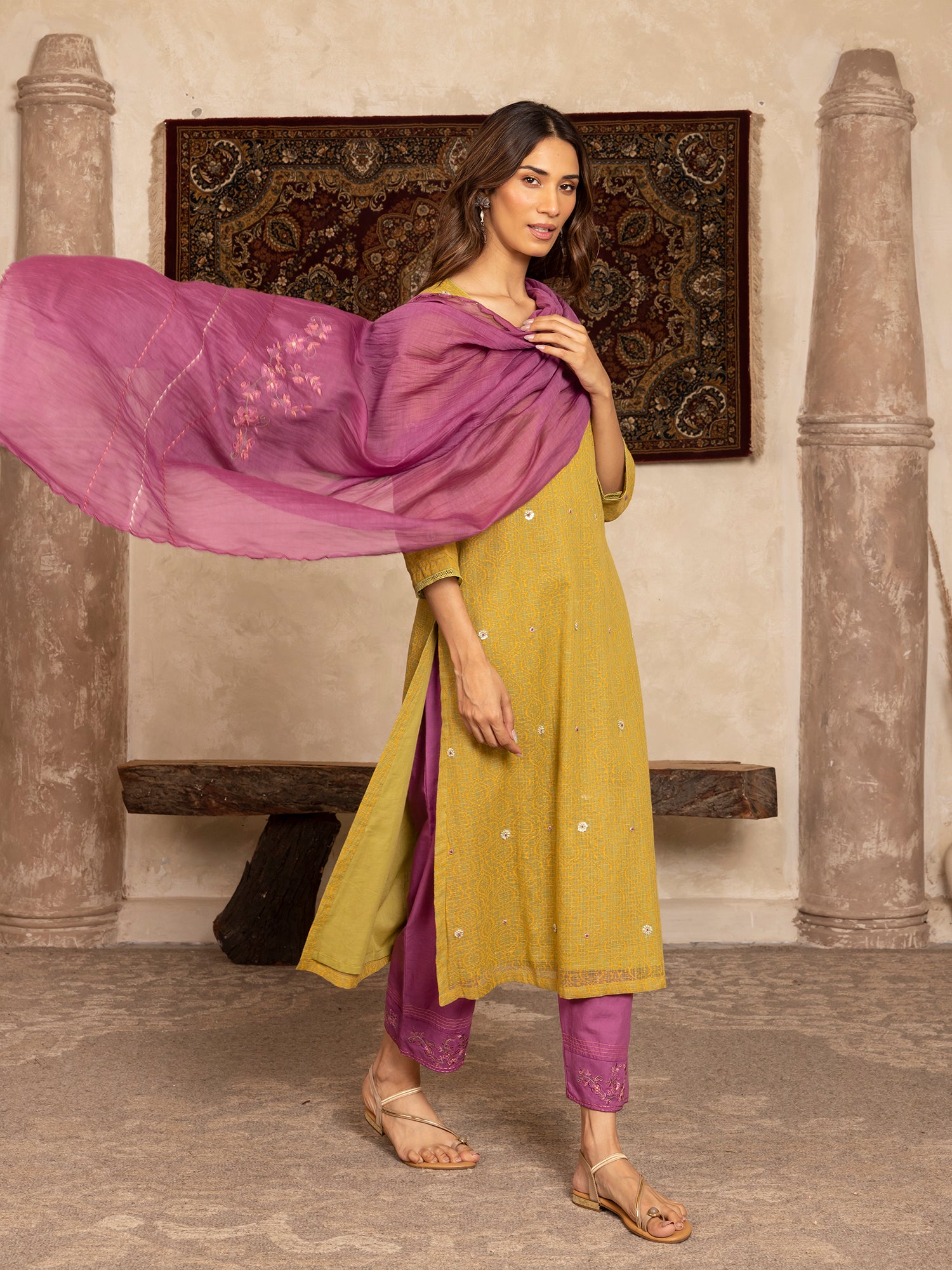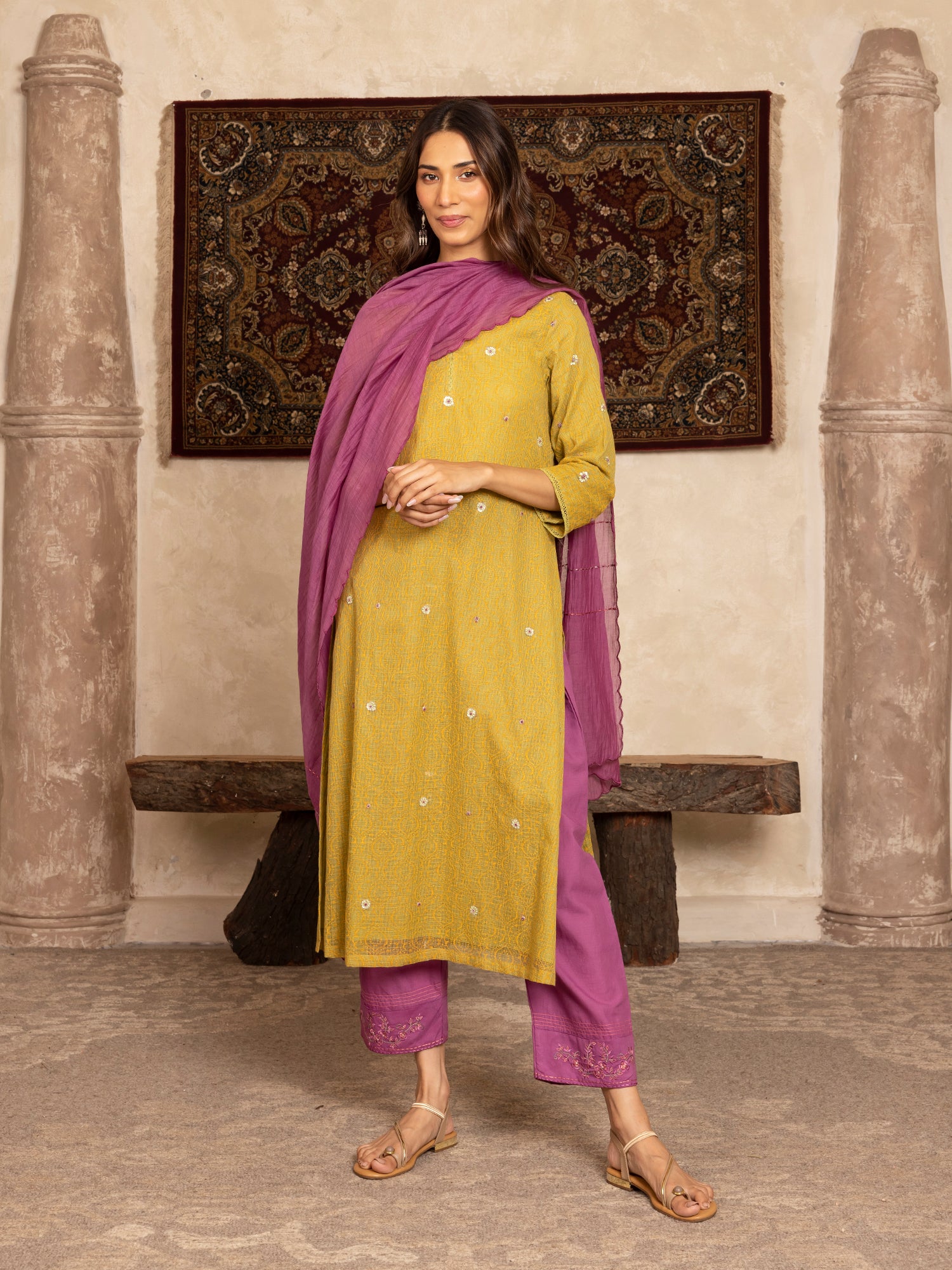 Parrot green hand block print kota cotton with zardozi hand embroidery kurta