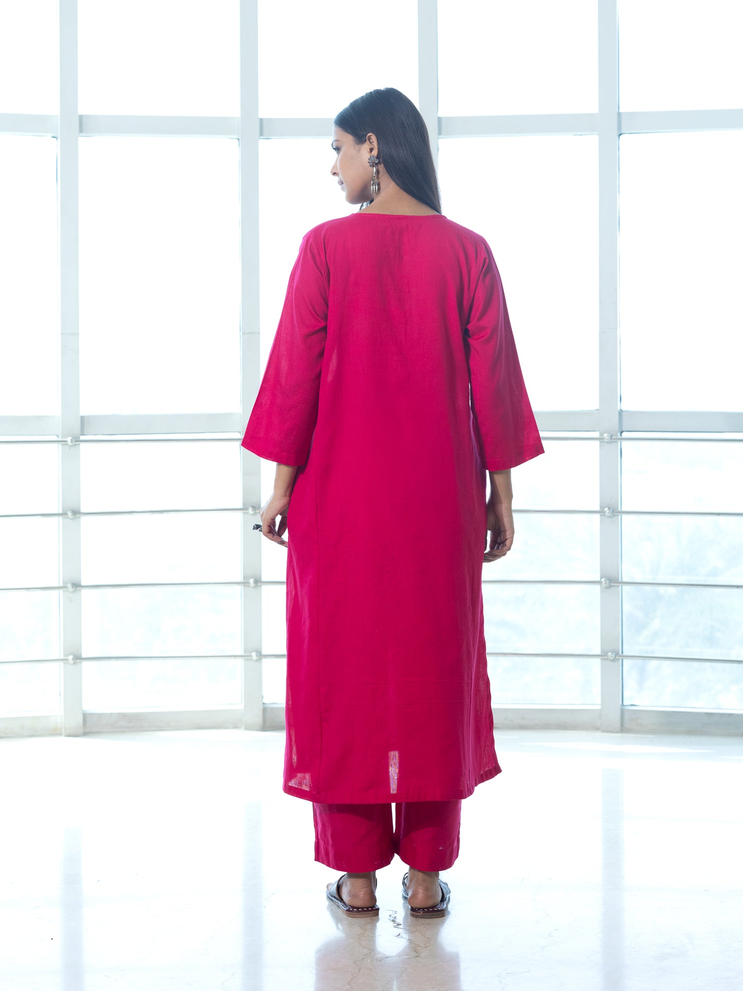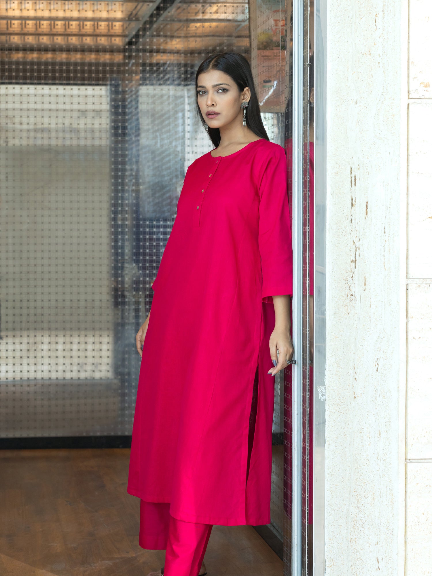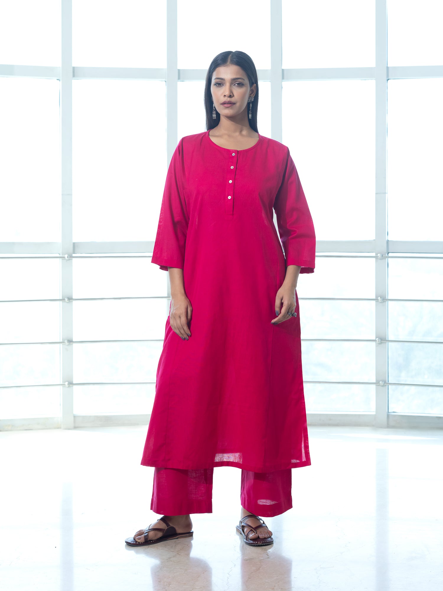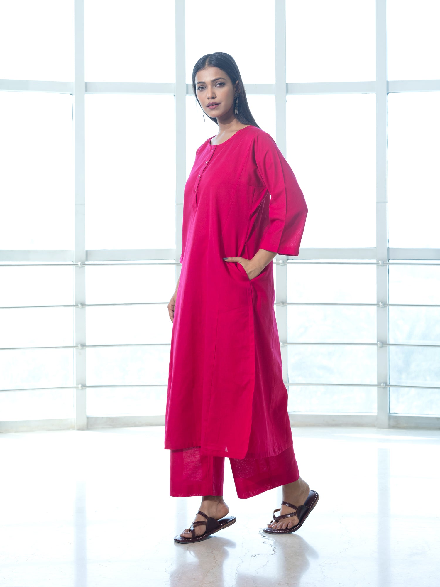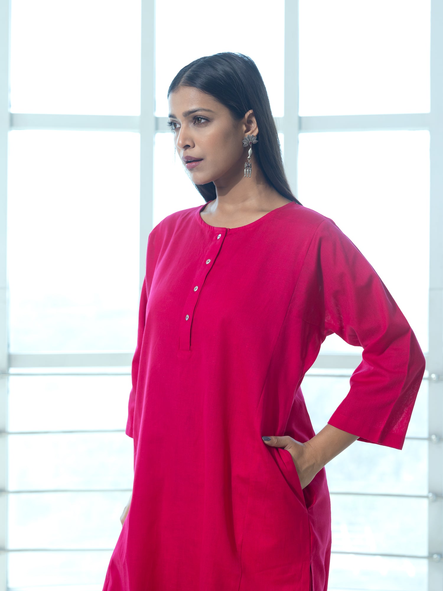 - DETAILS: Functional placket with shell button and side slits for easy mobility and pockets on both sides of the kurta.