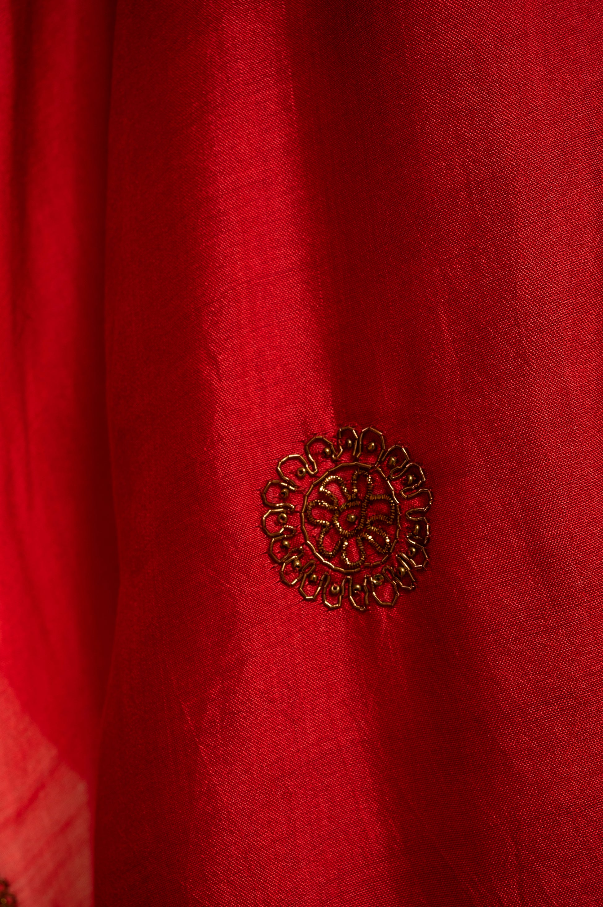 Chanderi silk pant with attached mulmul lining and zardozi embroidery on the bottom.