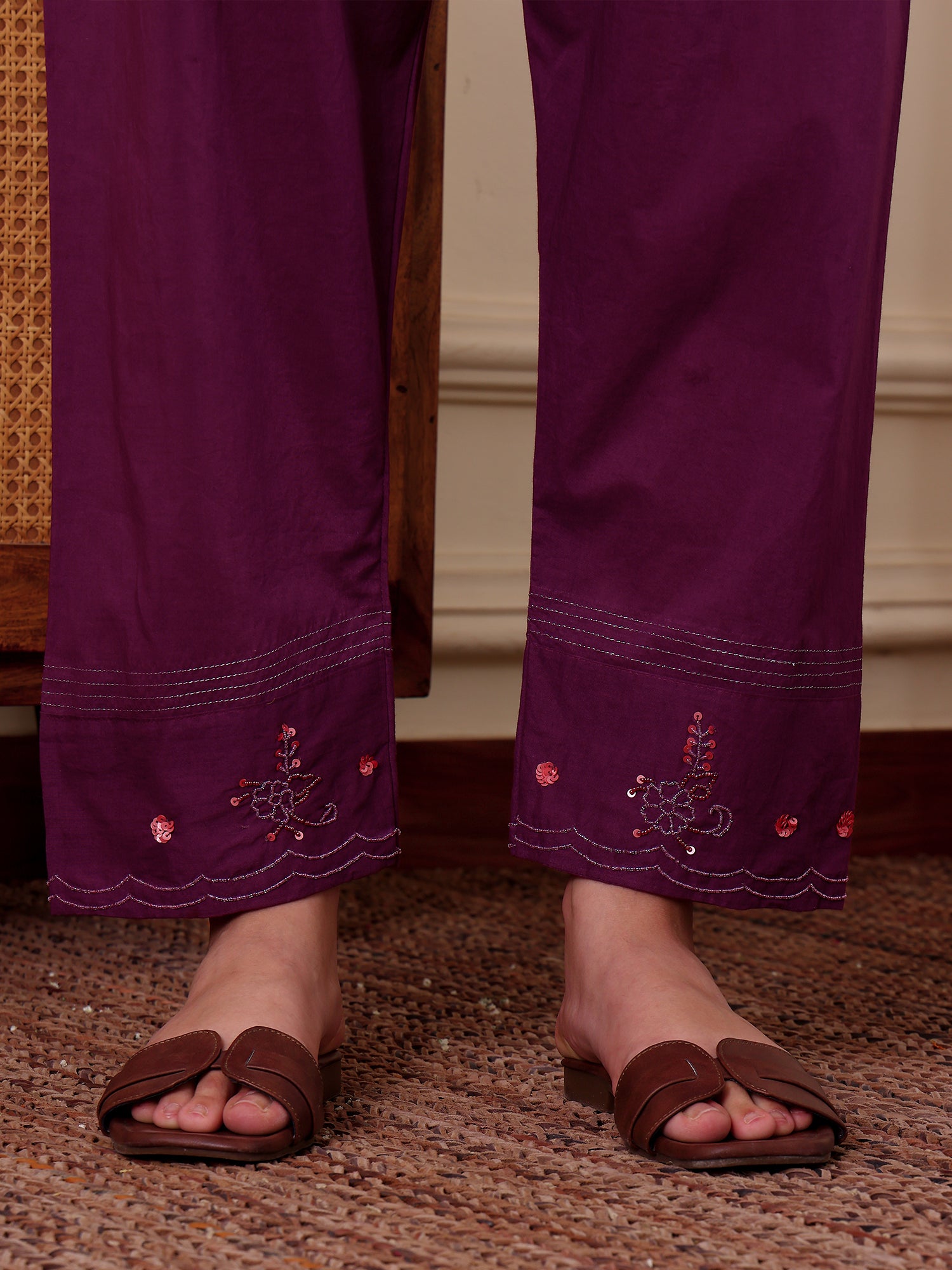 Purple Zardozi Cotton Pants