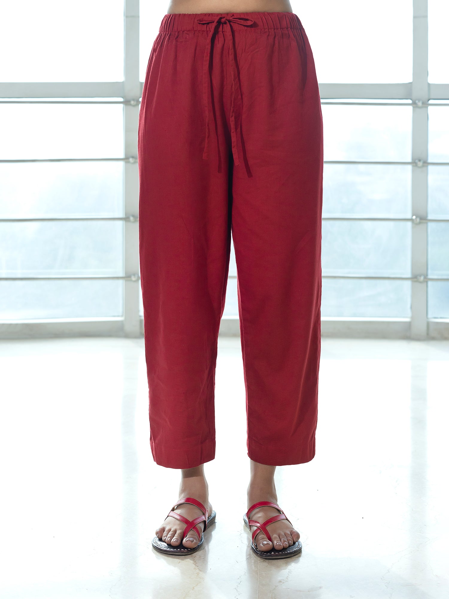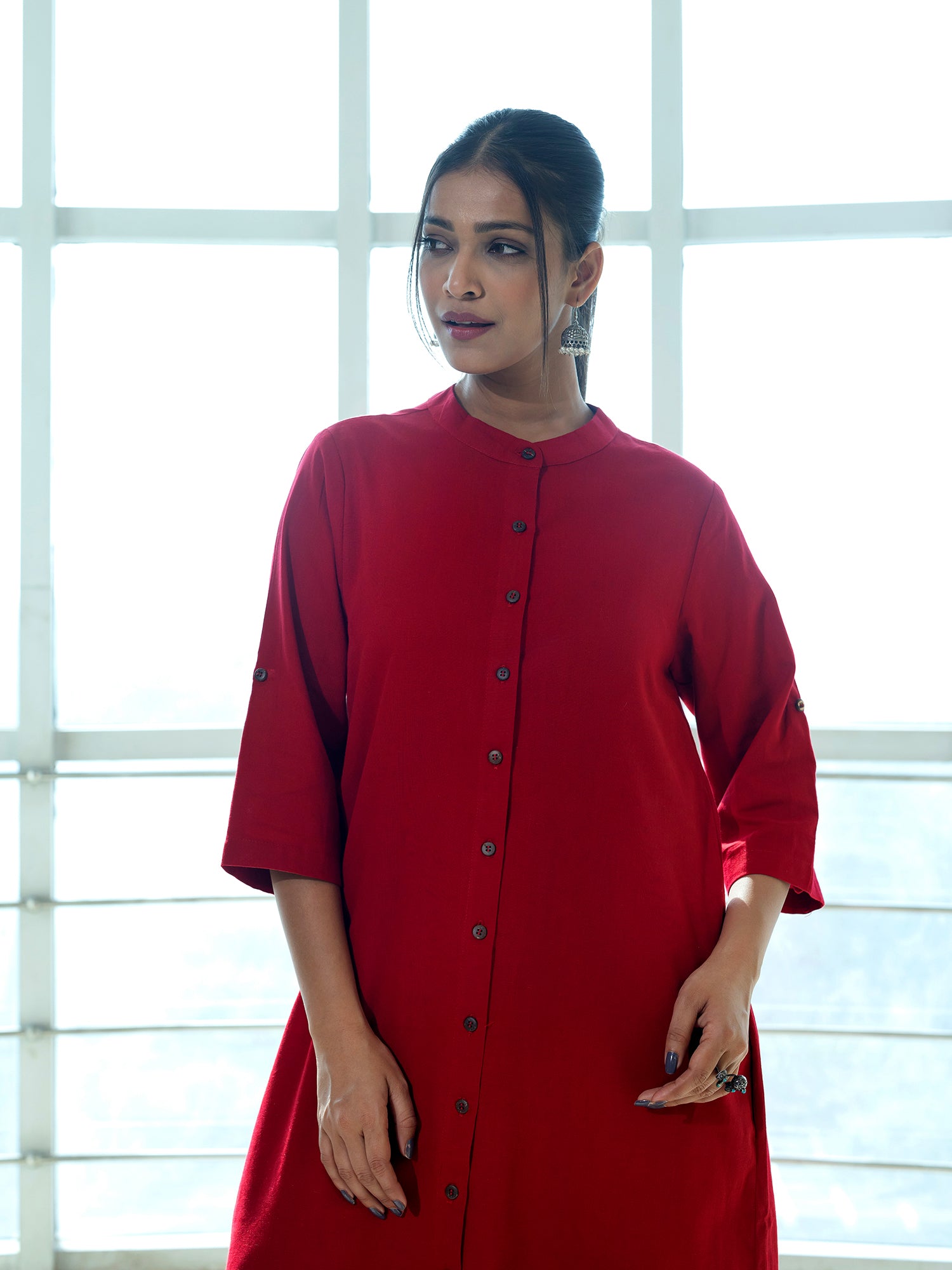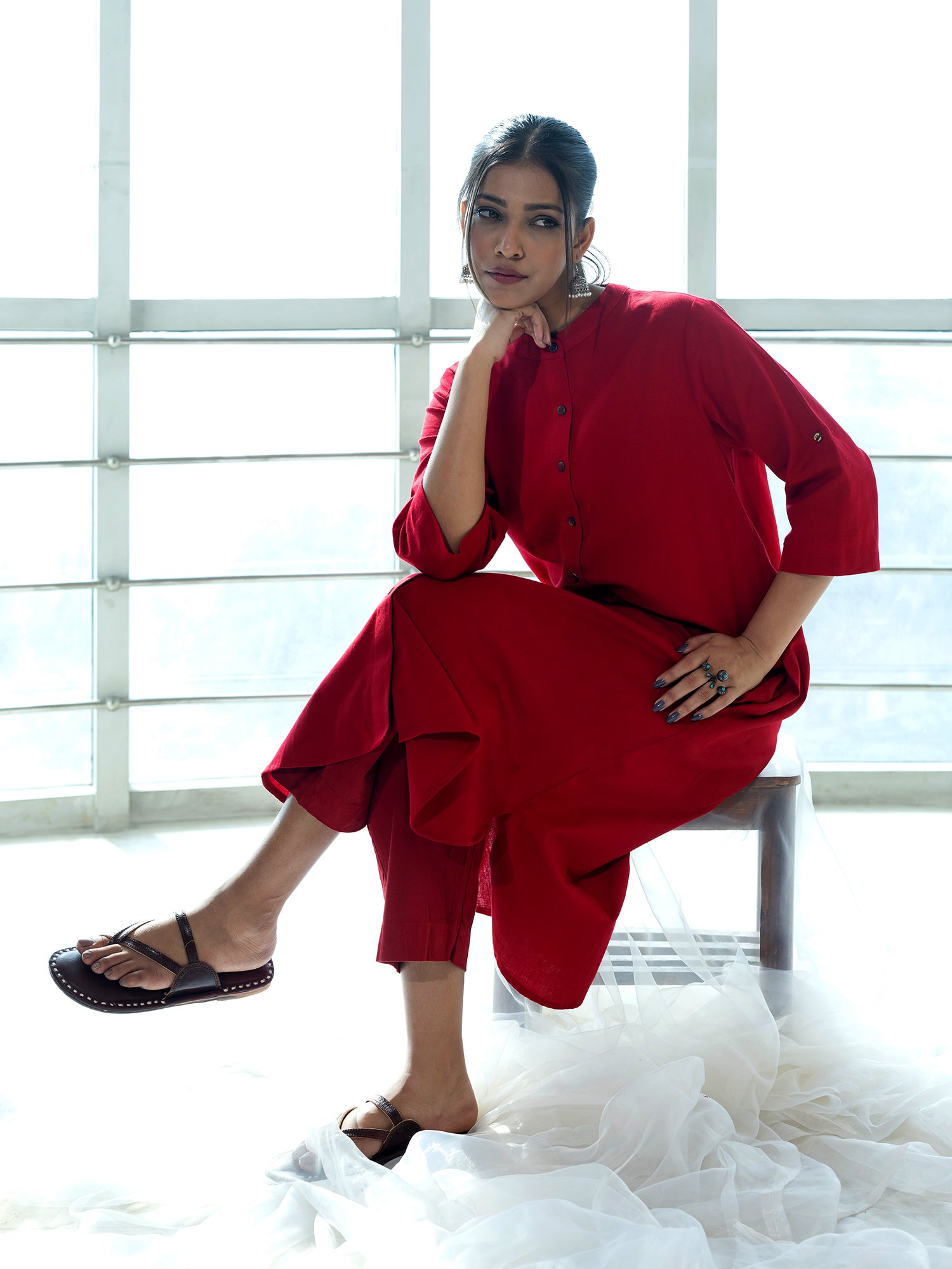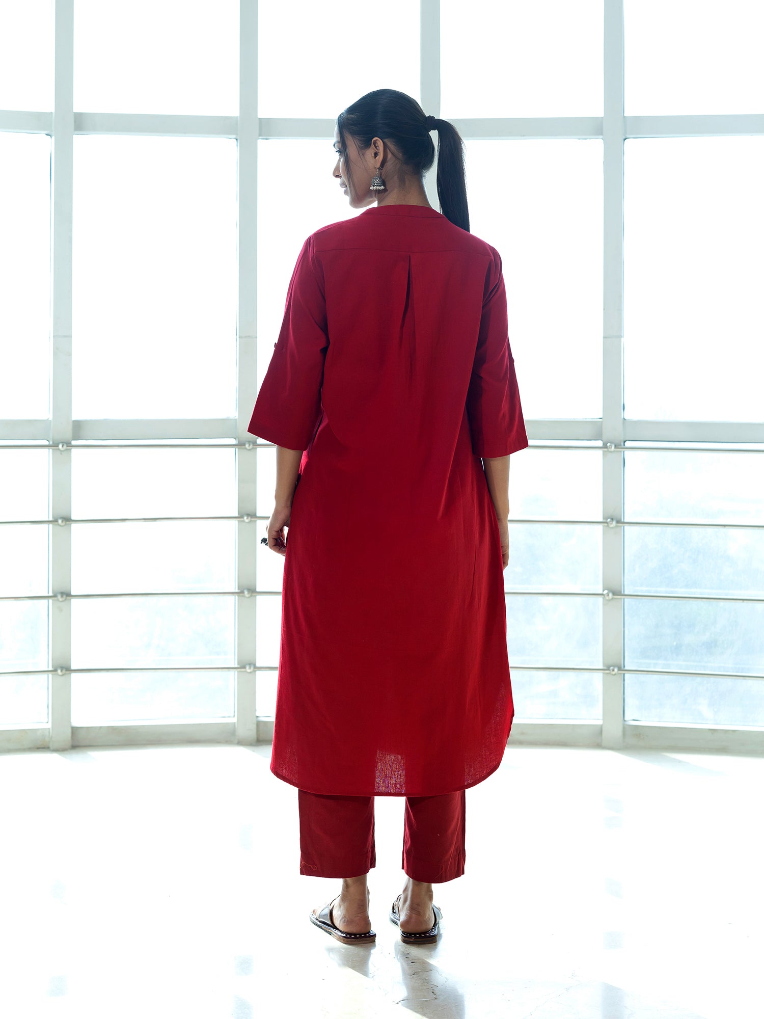 Red cotton linen a line kurta co-ord set