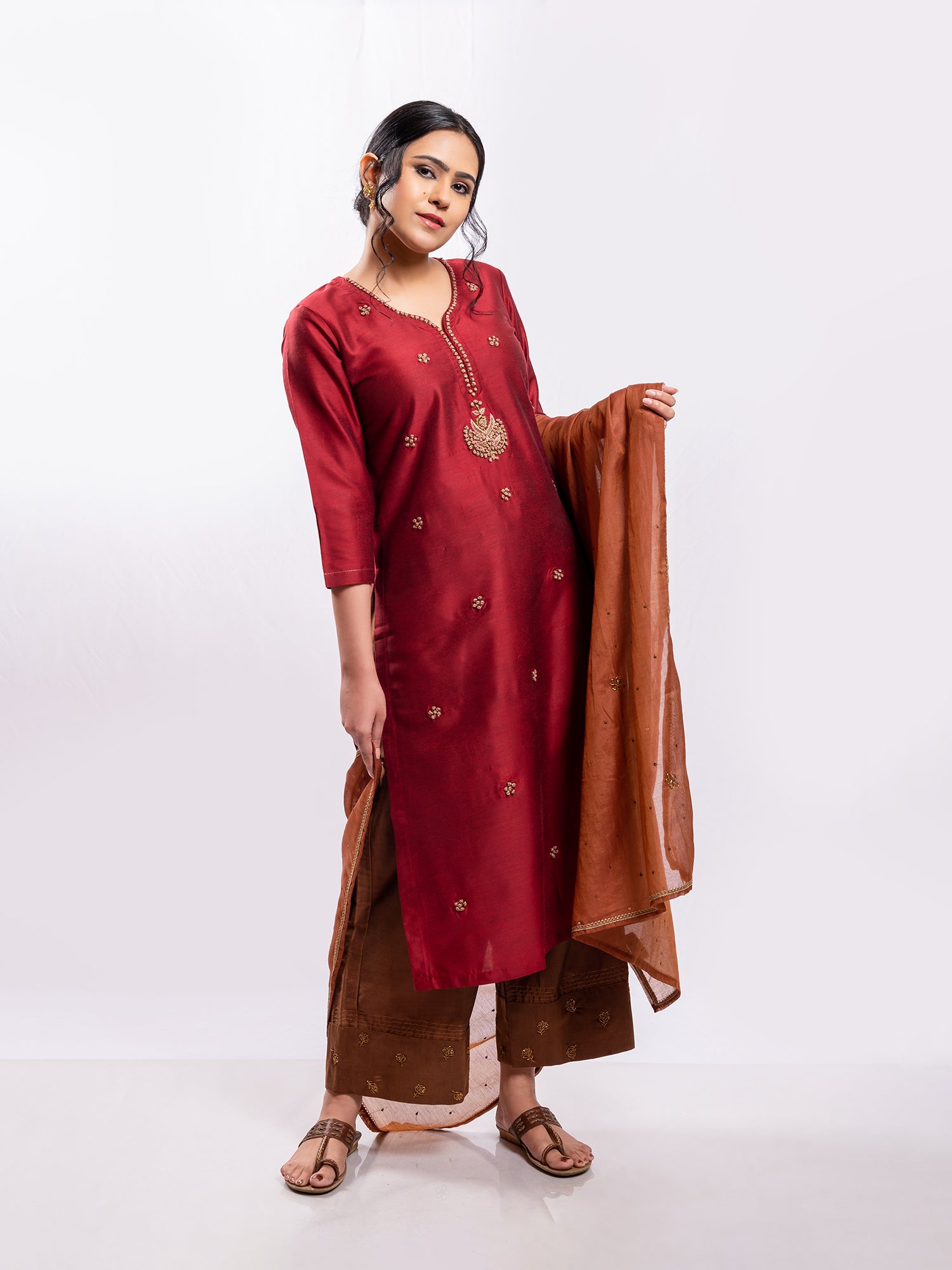 - DETAILS: The cotton chanderi dupatta features beautiful aari hand work.