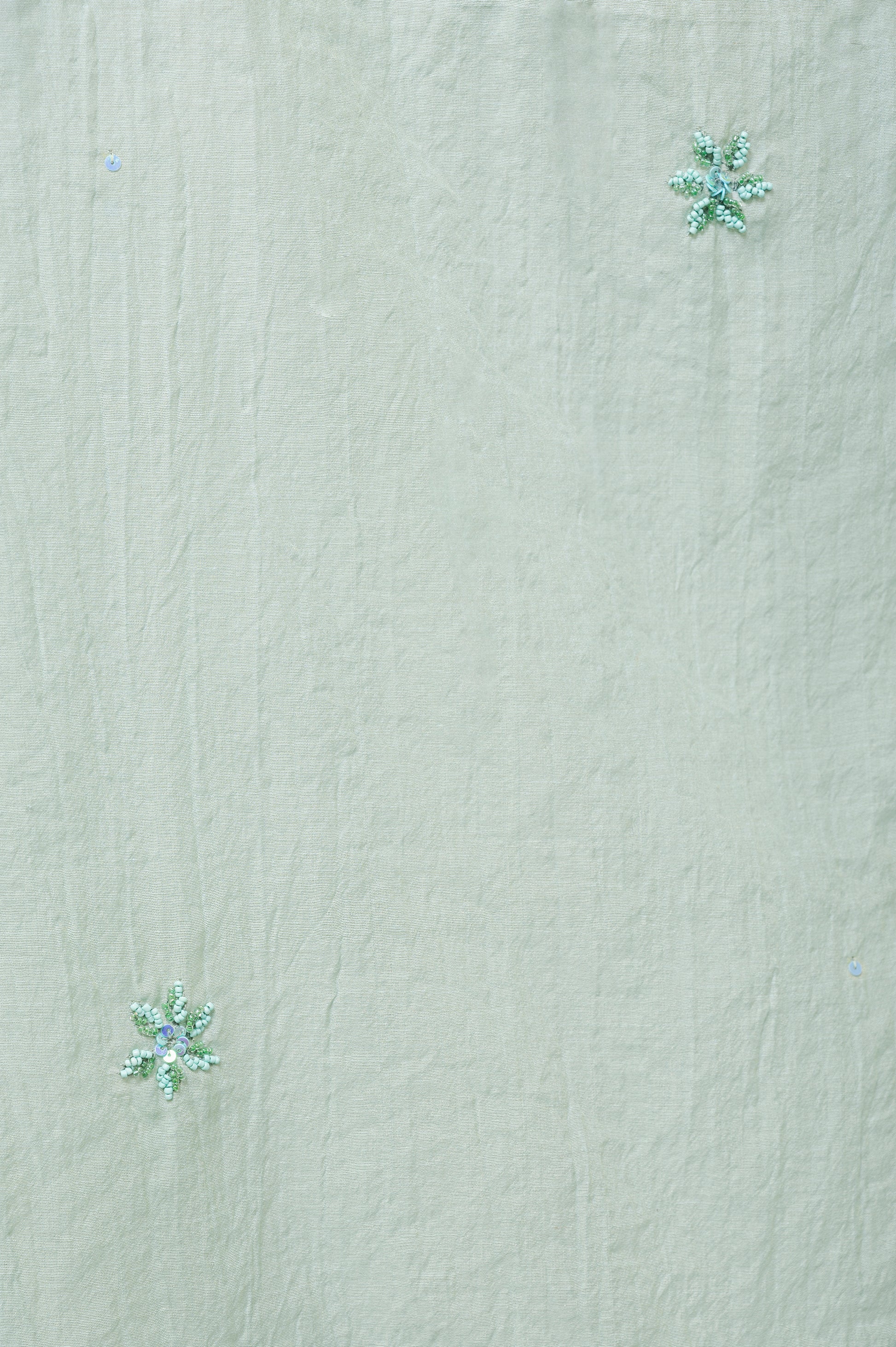 - EMBROIDERY: Beadwork, sequins and zardozi work. The dupatta features all-over embroidery with scattered sequin work in contrast color and medium sized floral motif featuring zardozi, and beadwork.