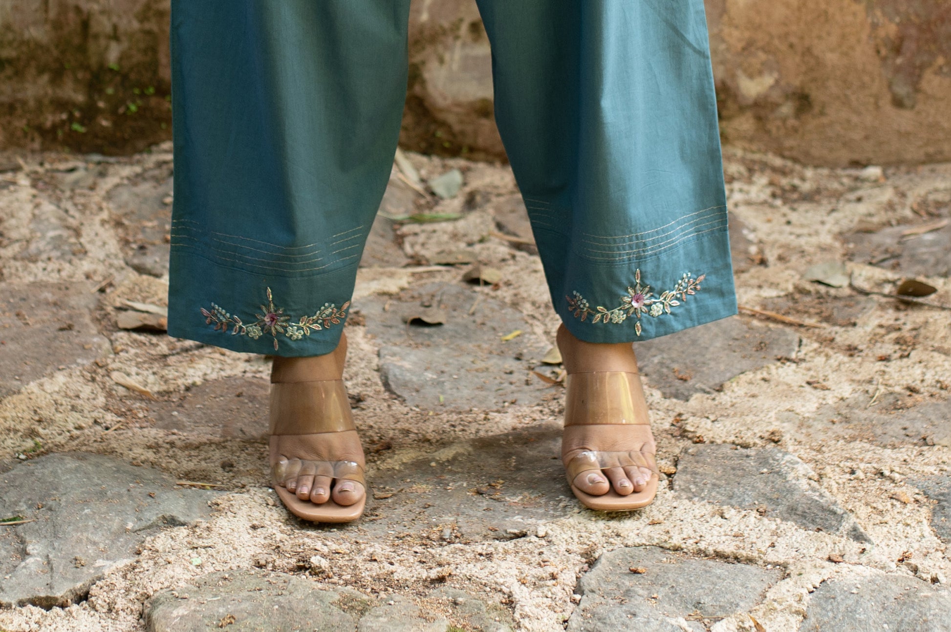 Sea blue Zardozi Cotton Pants