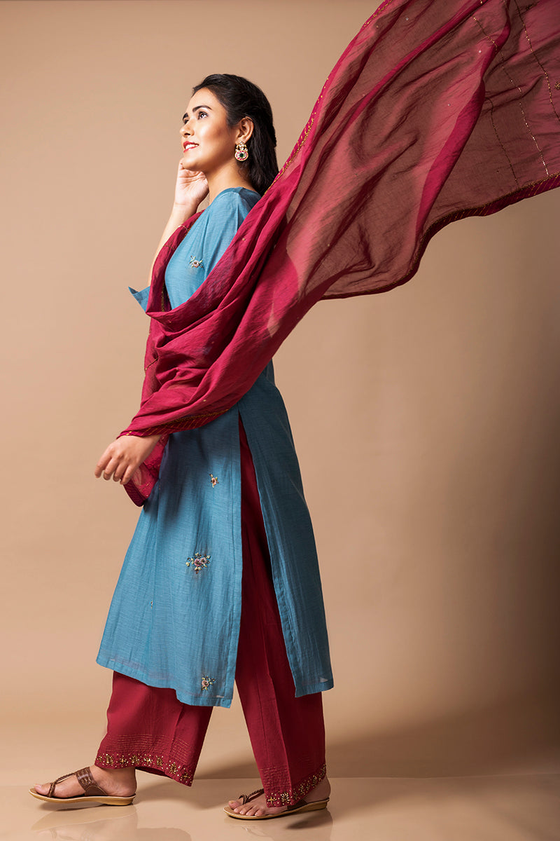 Teal Blue Chanderi Silk Kurta