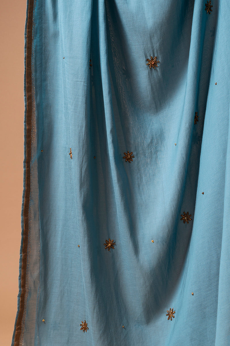 Teal Blue Zardozi Cotton Silk Dupatta