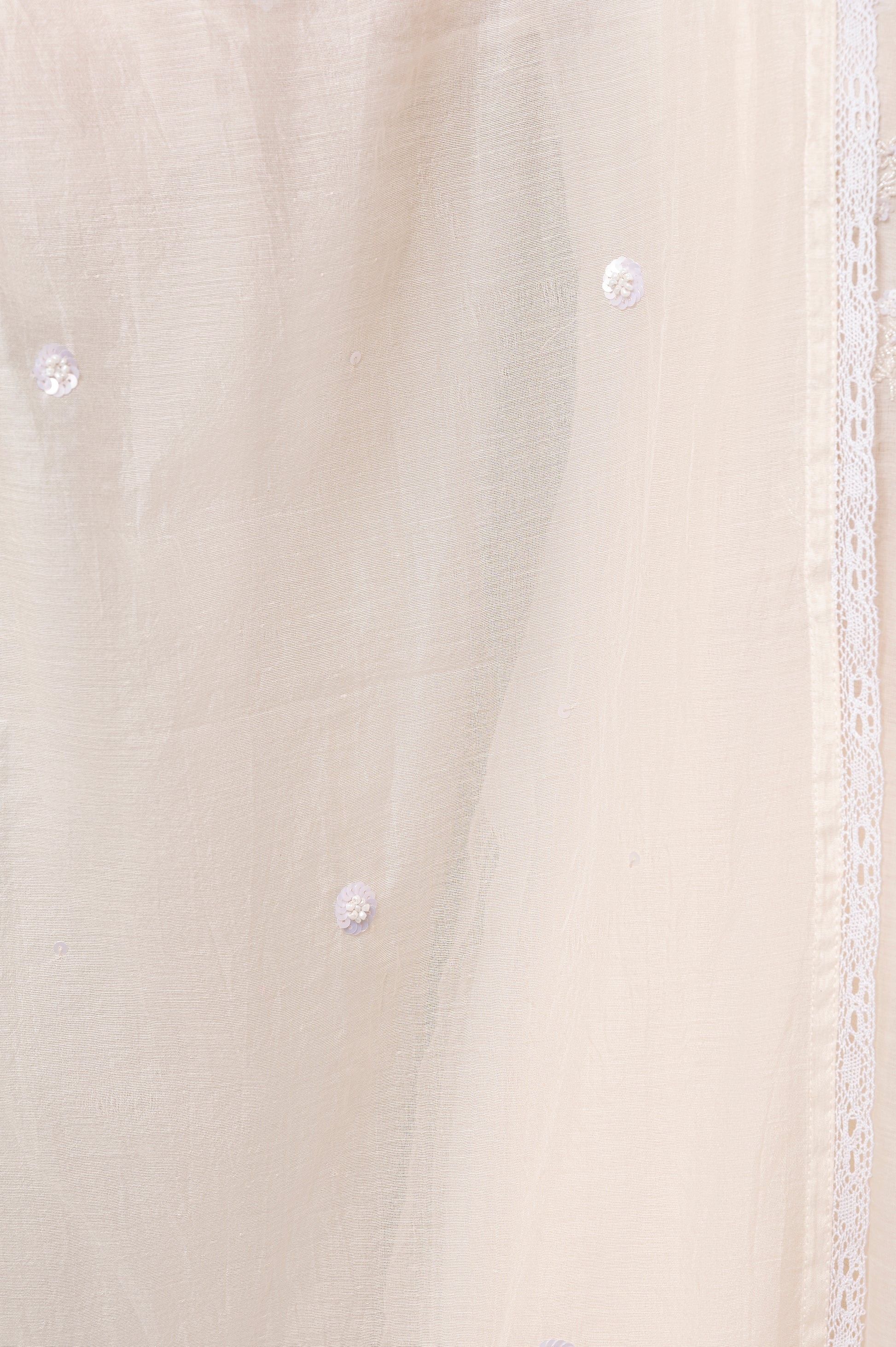 - DETAILS: The Chanderi dupatta features matching crochet lace around the edges of the dupatta which gives an exemplary touch.