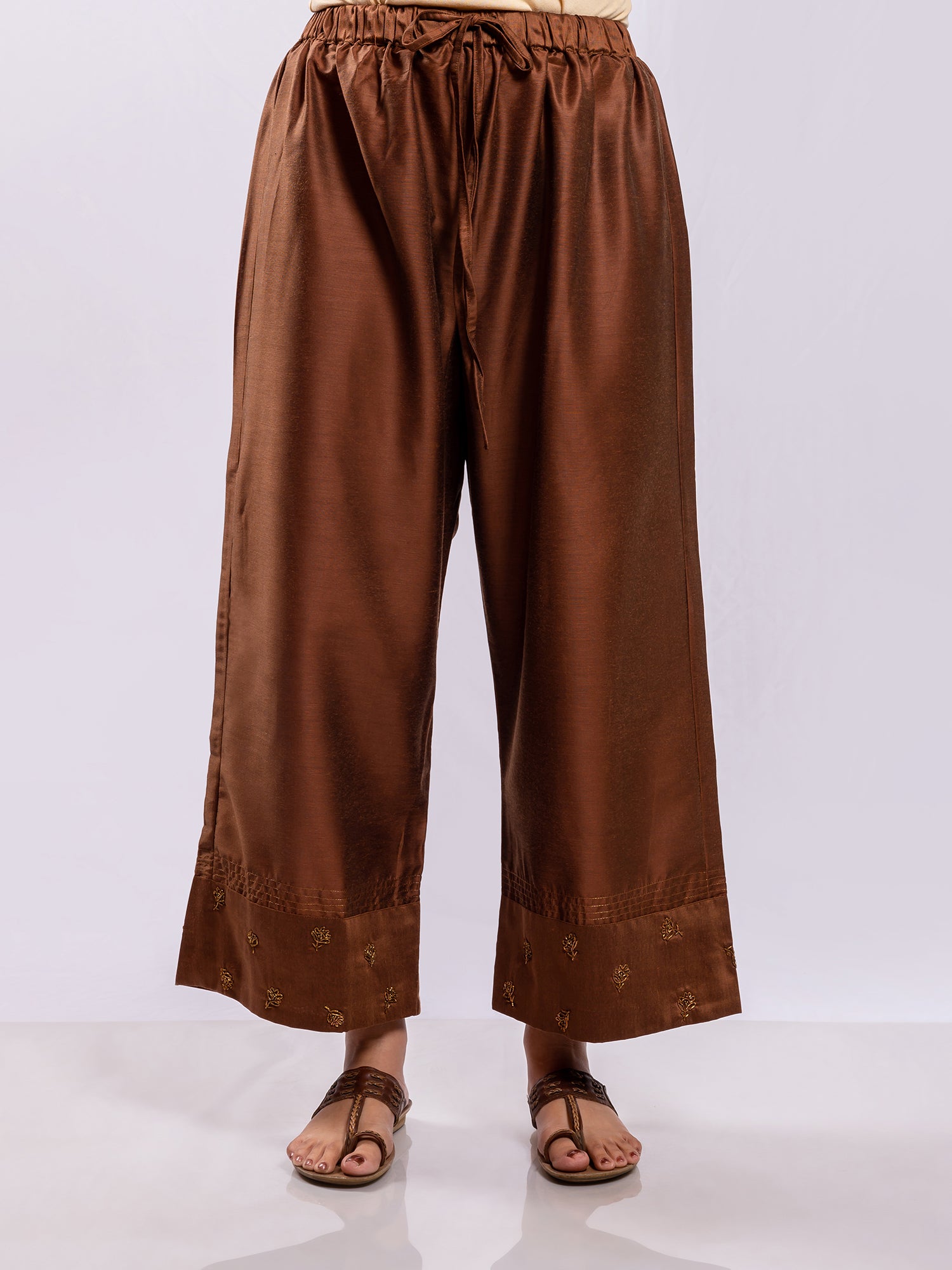 - DETAILS: The elasticated waist comes with a front tie-up detail and the pant bottom comes with aari embroidery and quilting.
